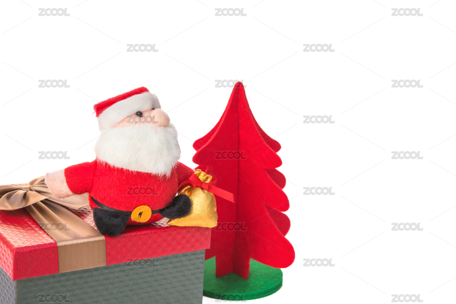 圣诞节装饰品,圣诞礼盒和圣诞球,圣诞树等在白色背景上的俯拍镜头