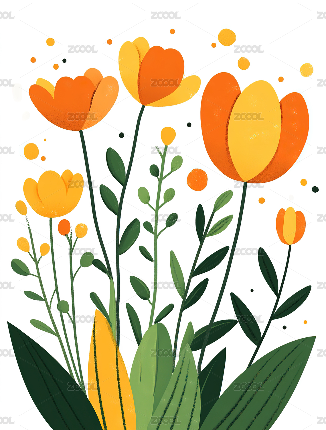 平面风格黄绿色系花朵装饰