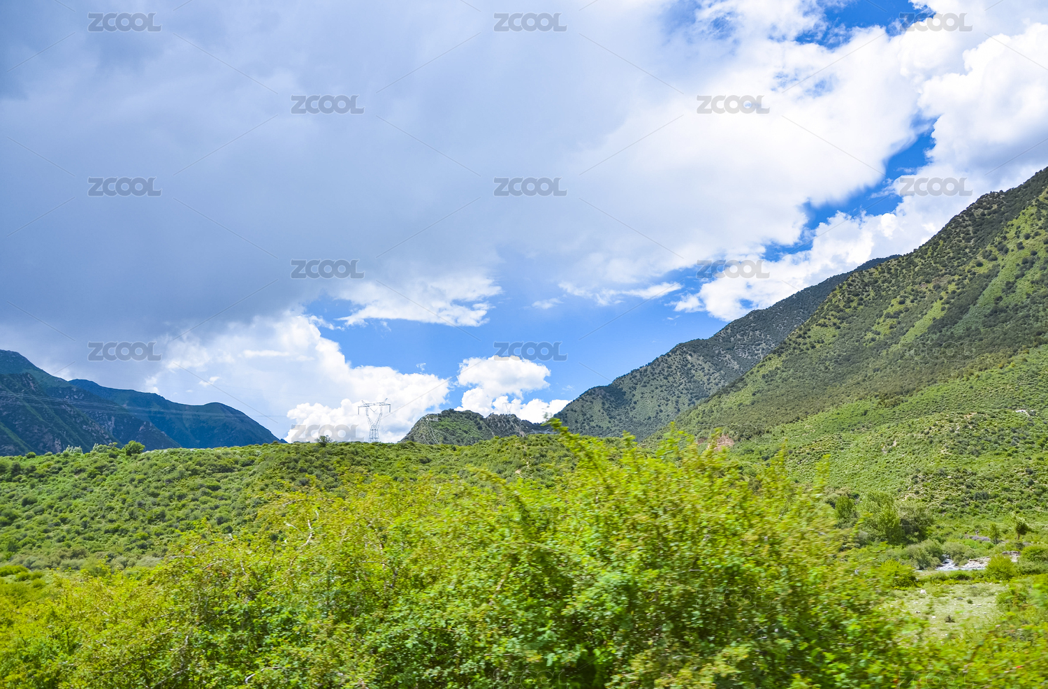 中国四川甘孜蓝天白云下的青山