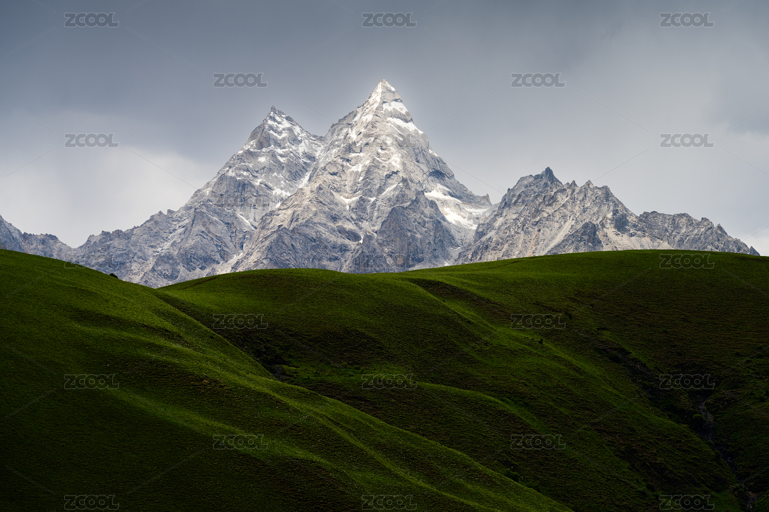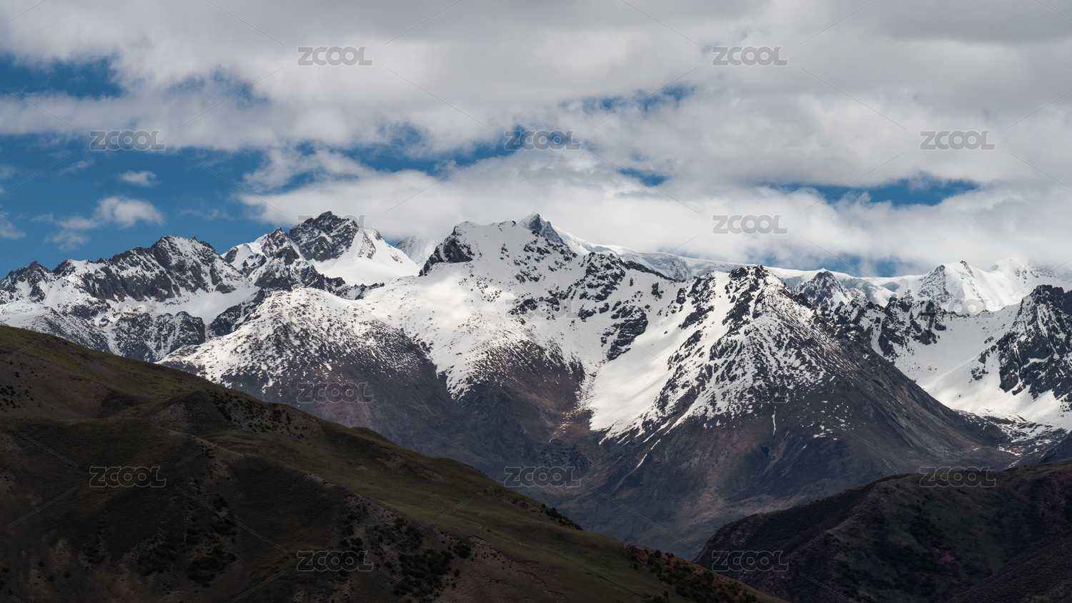贡嘎山西坡子梅垭口钙华坡及贡嘎主峰