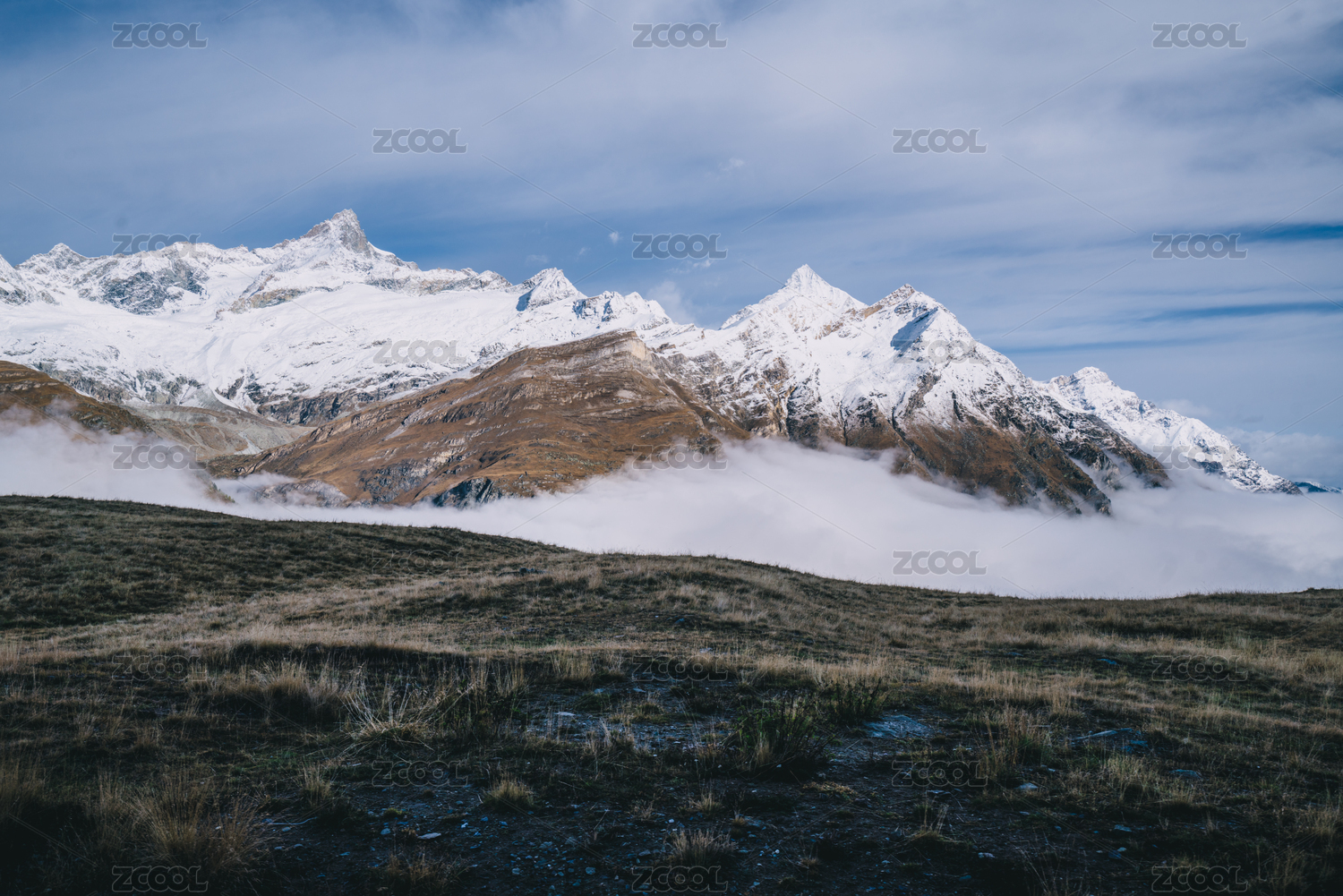 冰雪覆盖的瑞士马特洪峰与冰川雪山特写风光