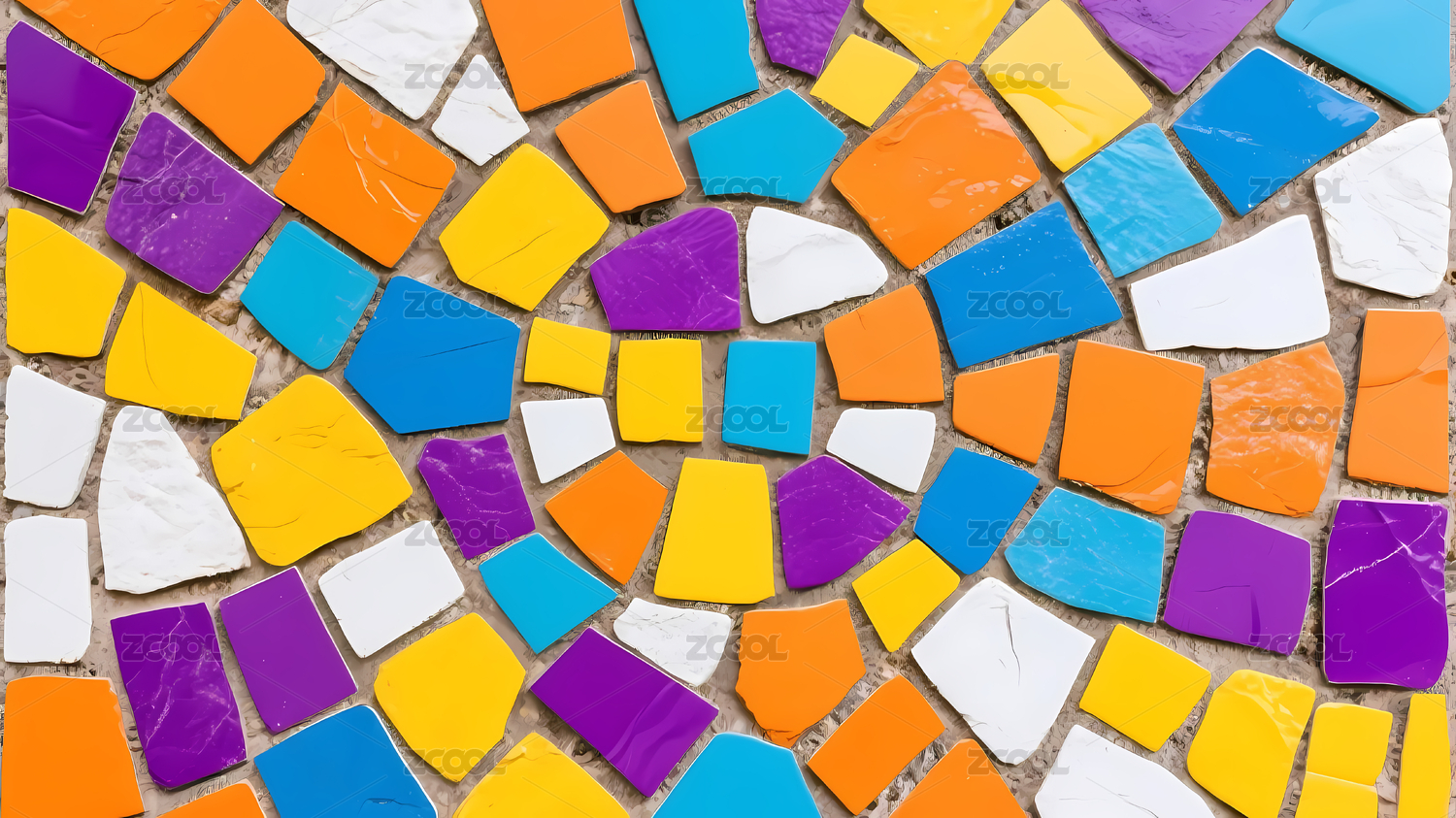 彩色瓷砖碎片镶嵌的马赛克墙面纹理特写