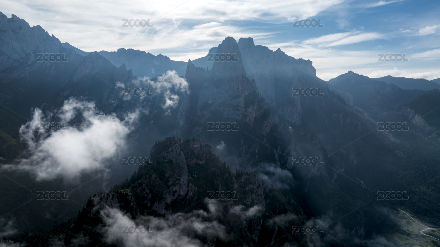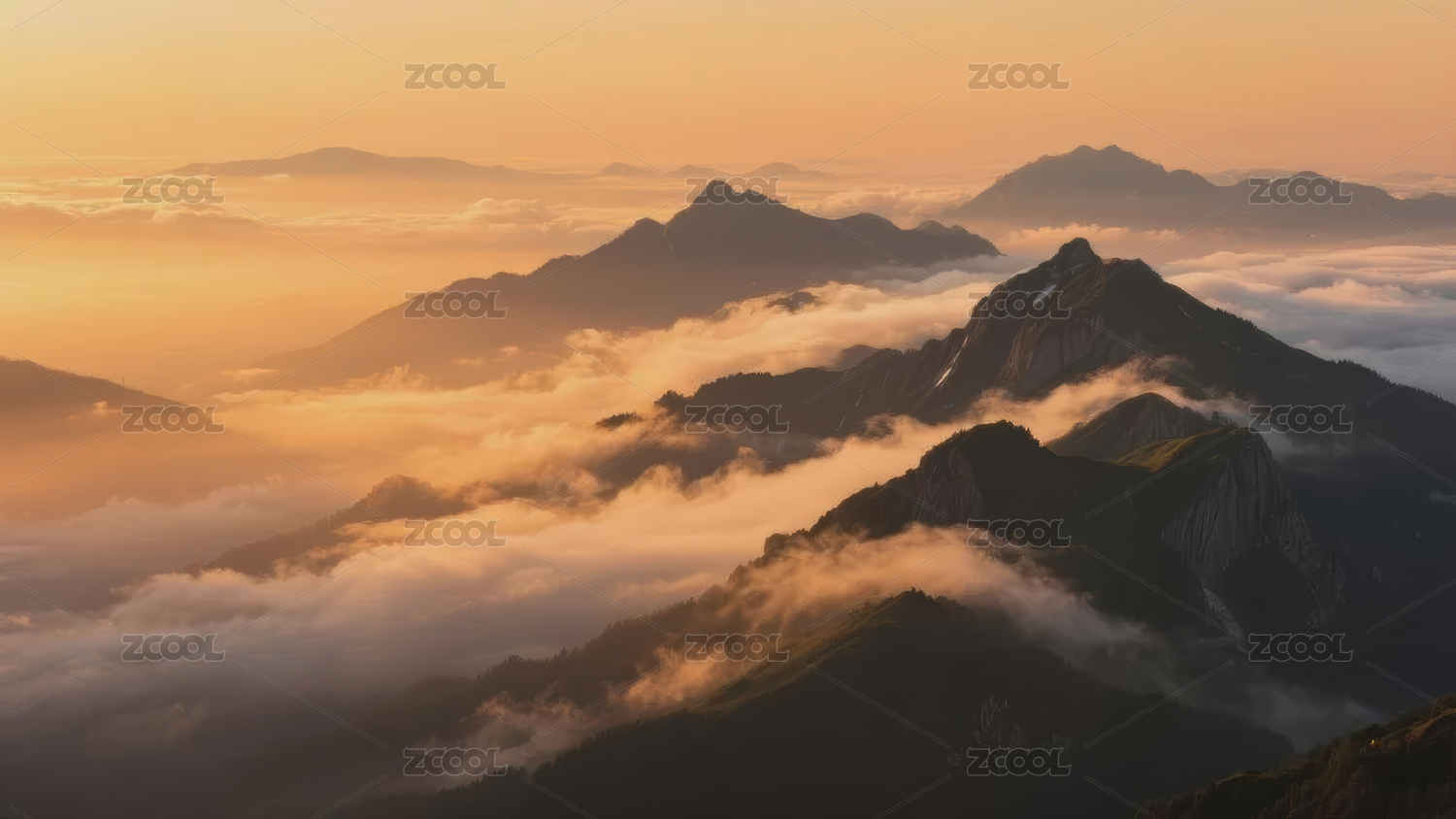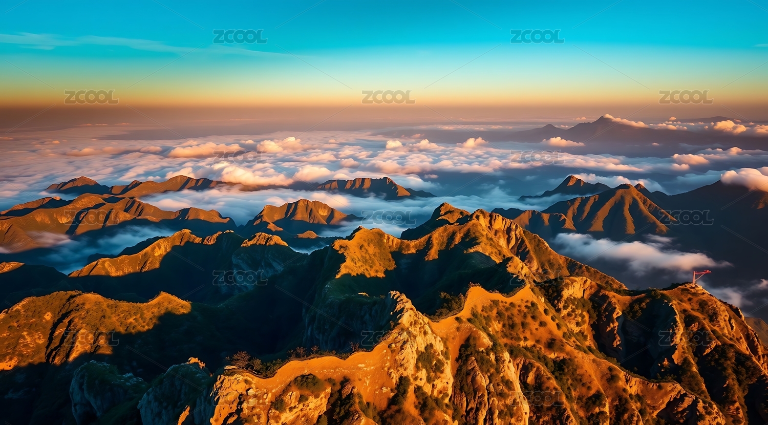 天空,与,清晨,山,山脉,阳光,俯拍,晨雾,缭绕,户外