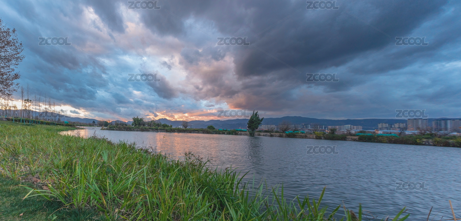 中国云南昆明滇池日落绚烂晚霞风景