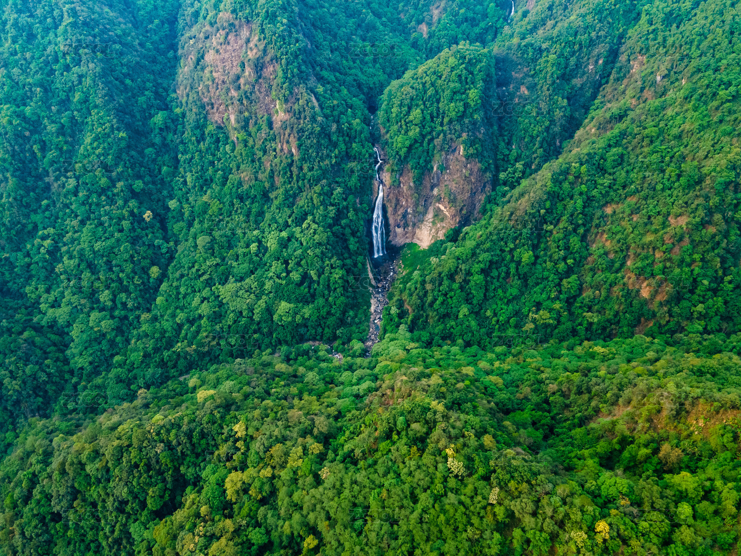 中国云南玉溪新平哀牢山原始森林航拍瀑布