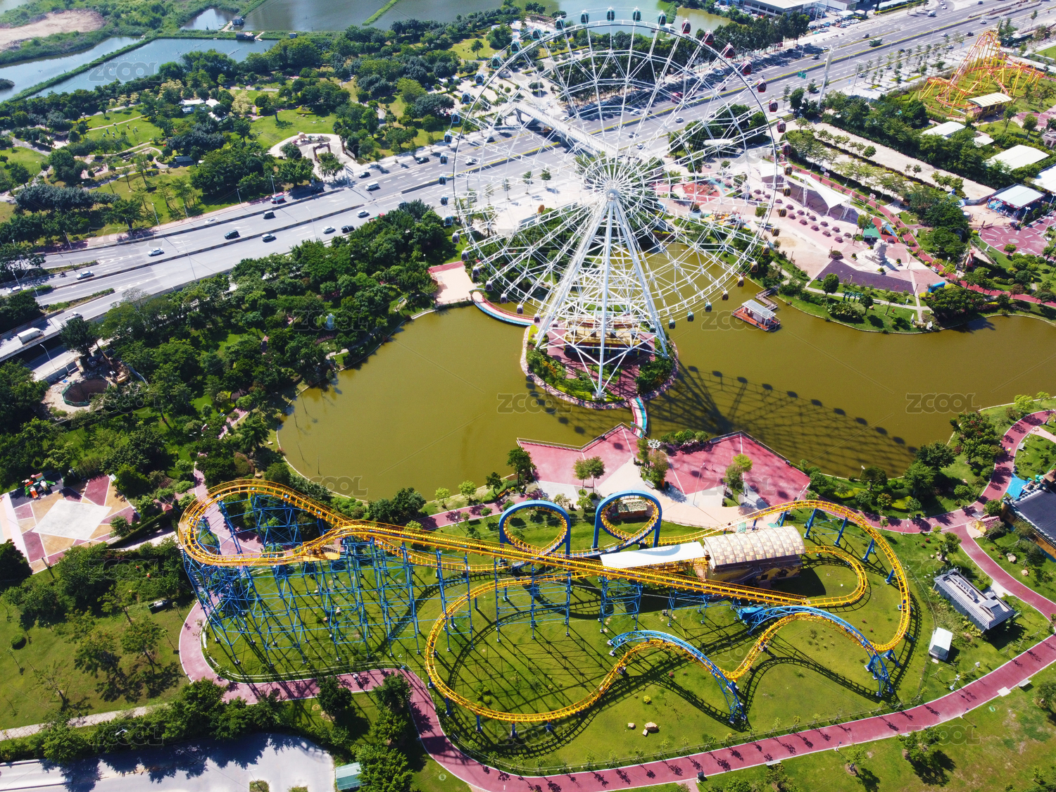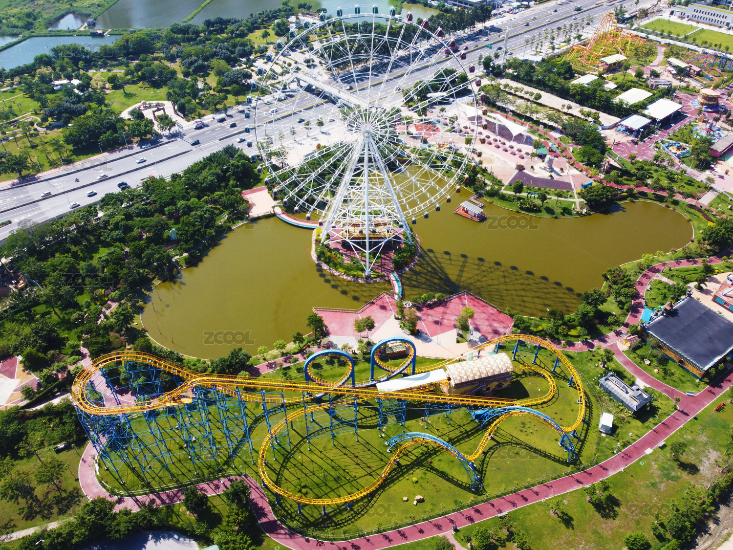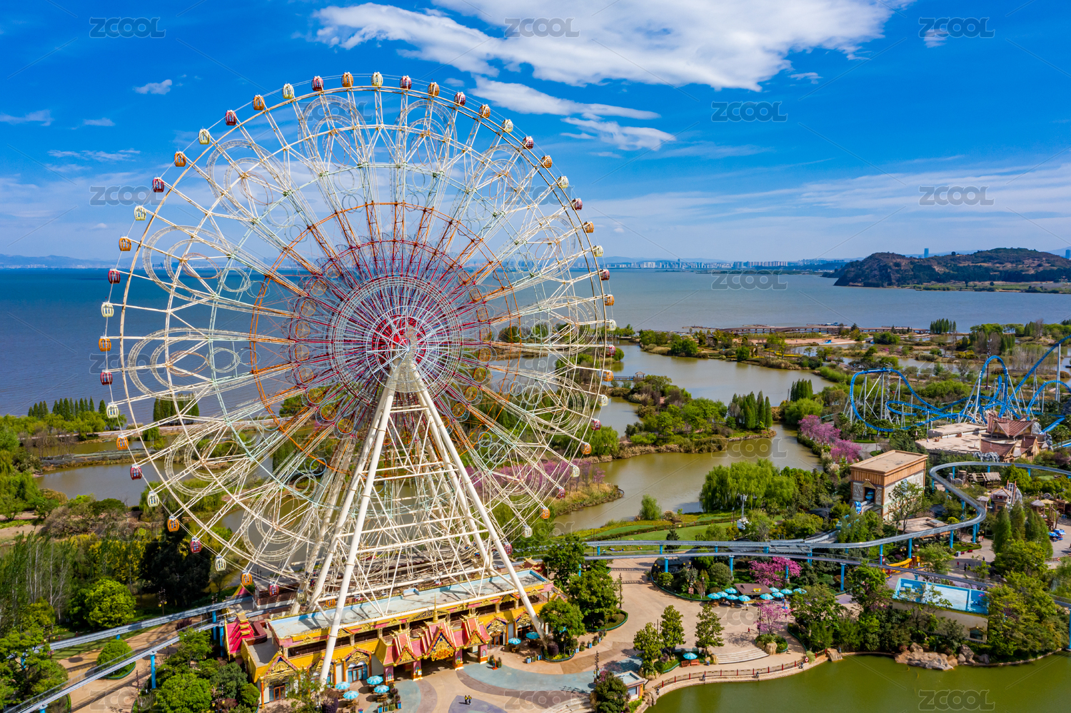 云南,昆明,七彩云南欢乐世界,主题乐园,游乐园,游乐场,航拍,高视角,俯拍,无人机航拍图