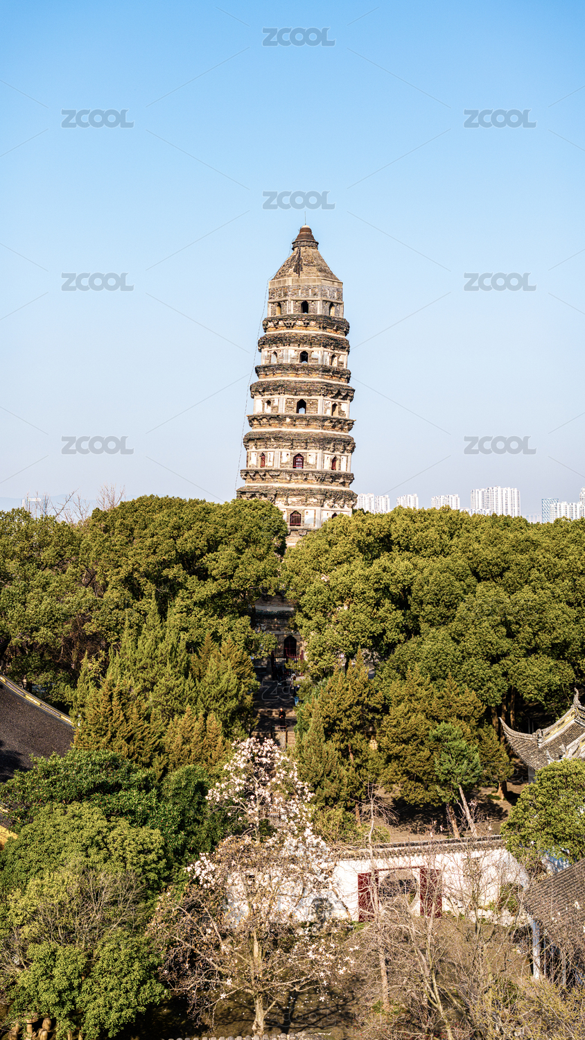 航拍河北省石家庄市正定县开元寺和须弥寺