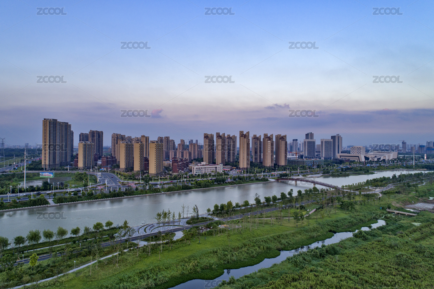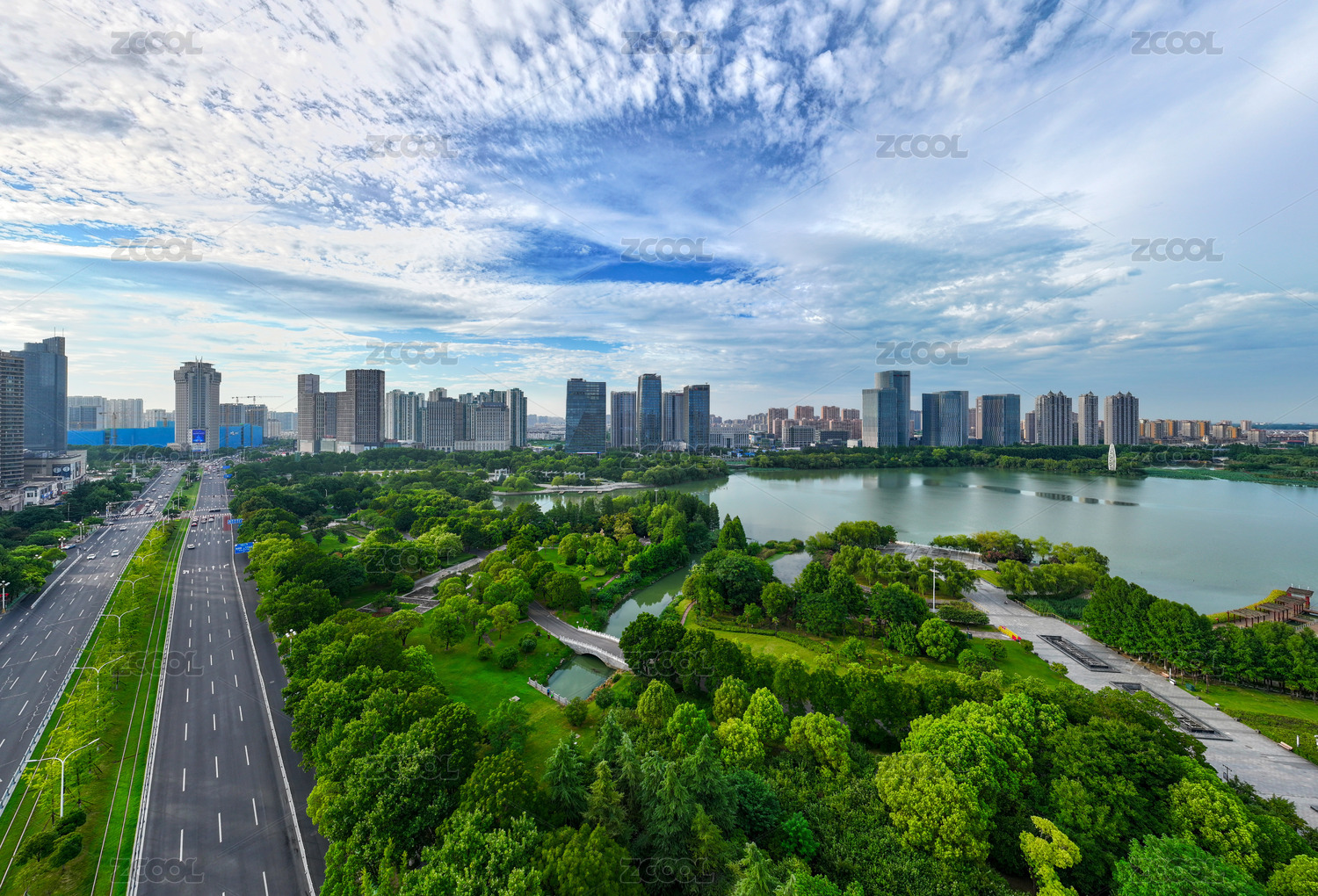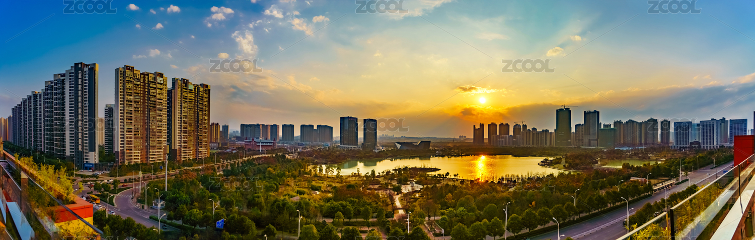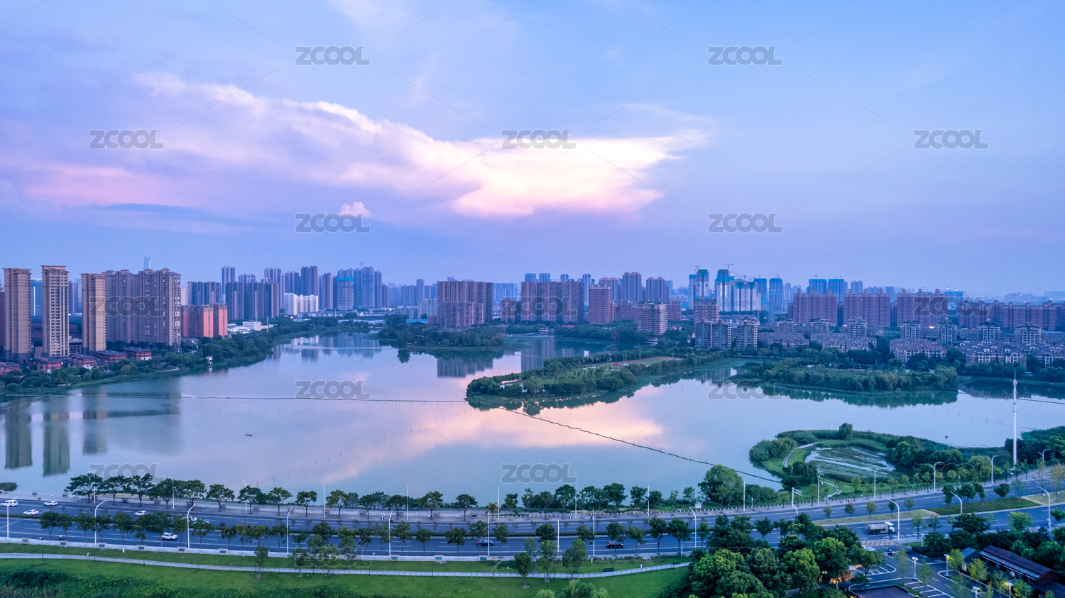 湖北武汉金银湖欧亚广场航天三江晚霞风光