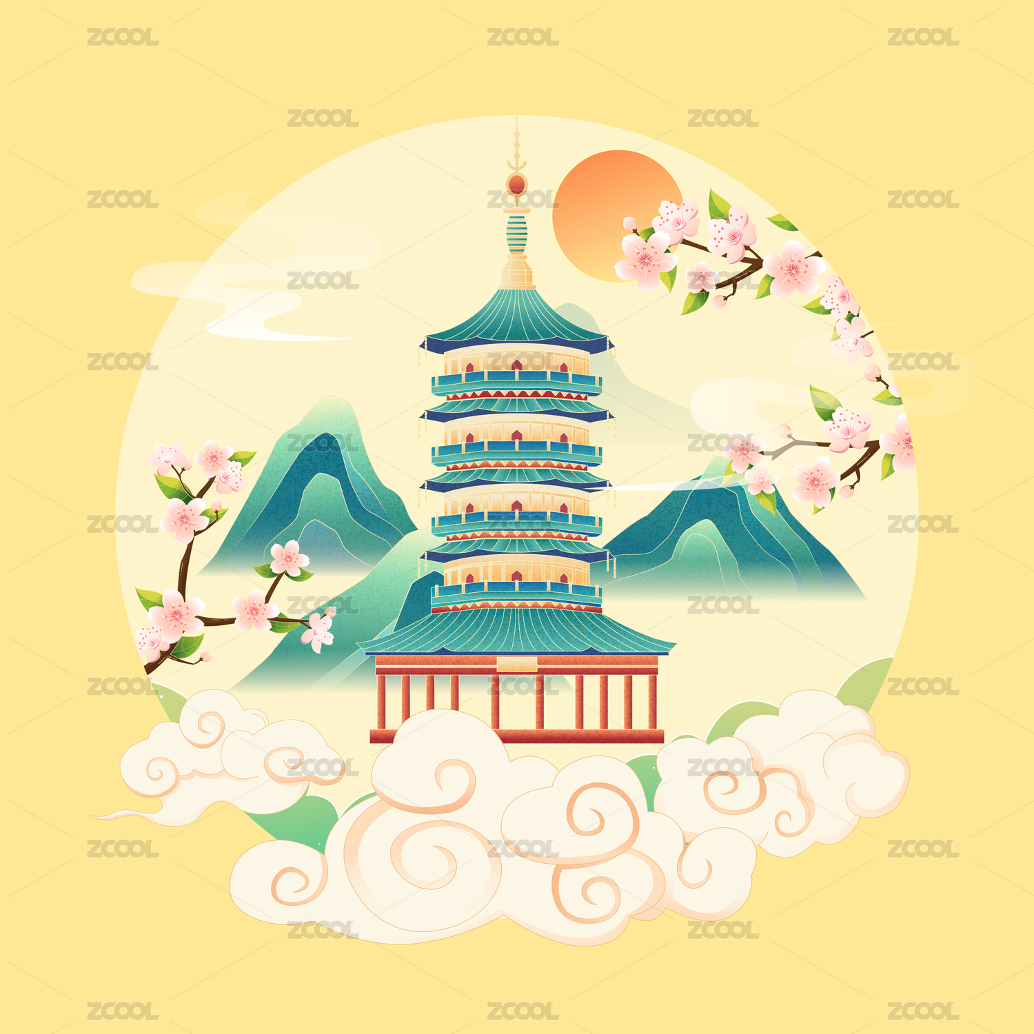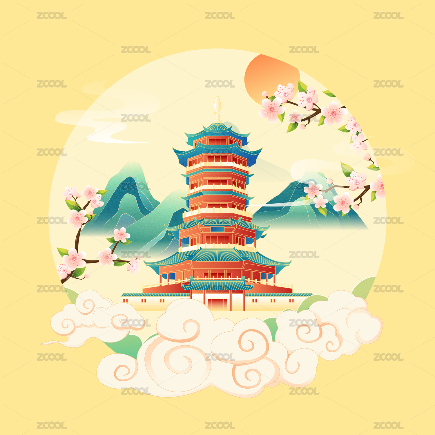 国风敦煌城市建筑立春节气矢量插画海报