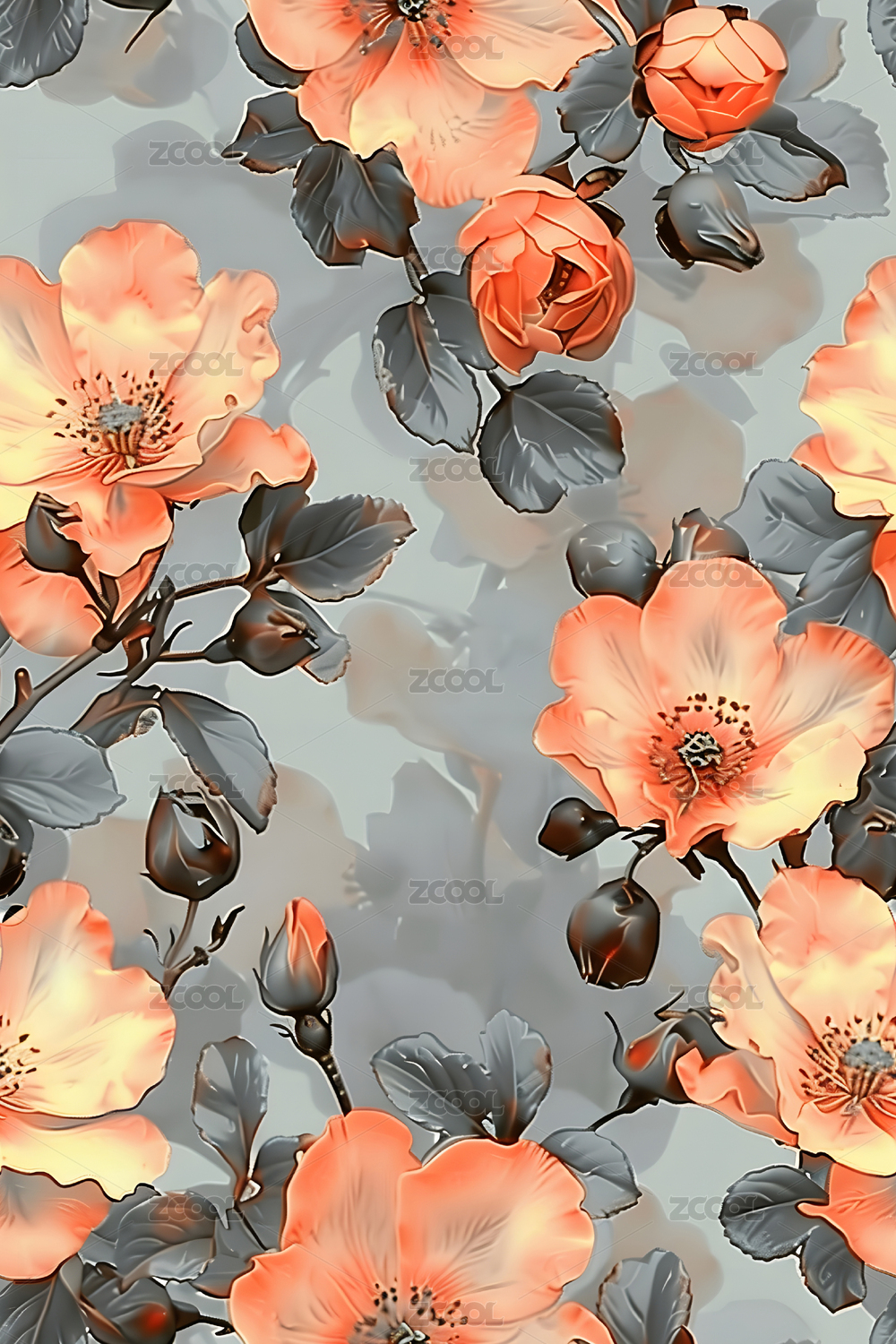 组合型花卉,AI,3D,几何,抽象,数码印花,纺织