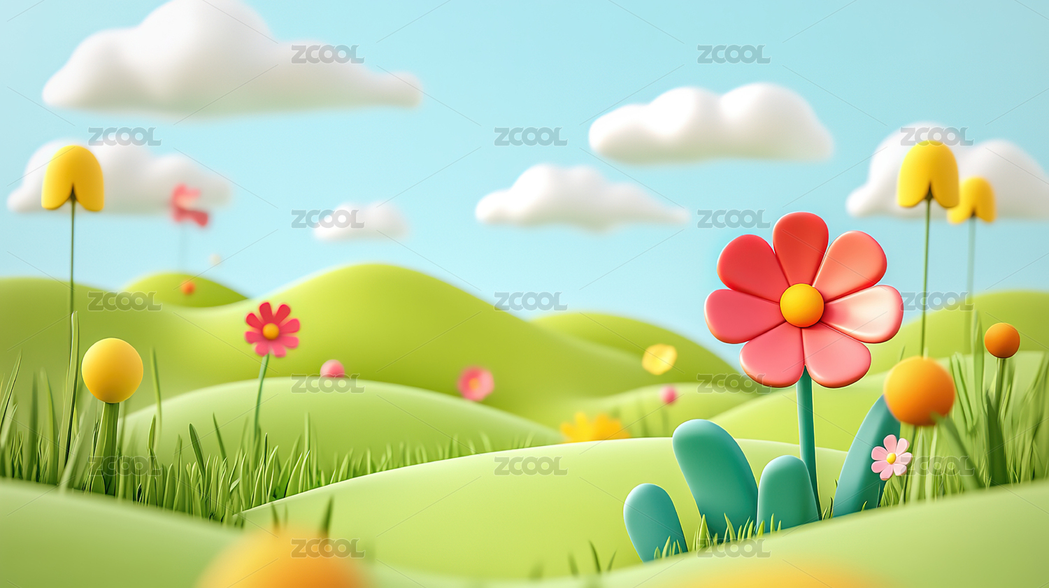 3D卡通春天草地背景