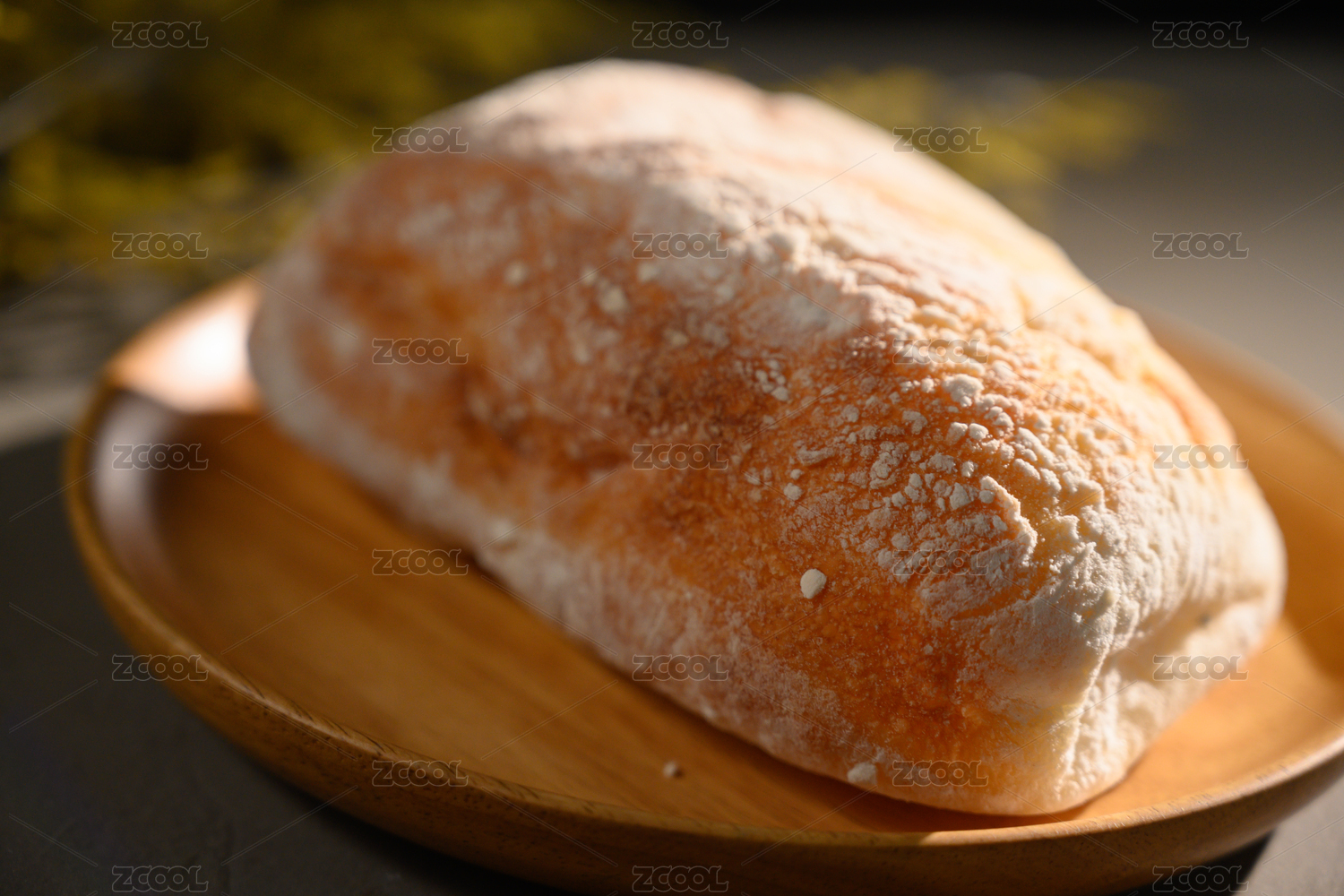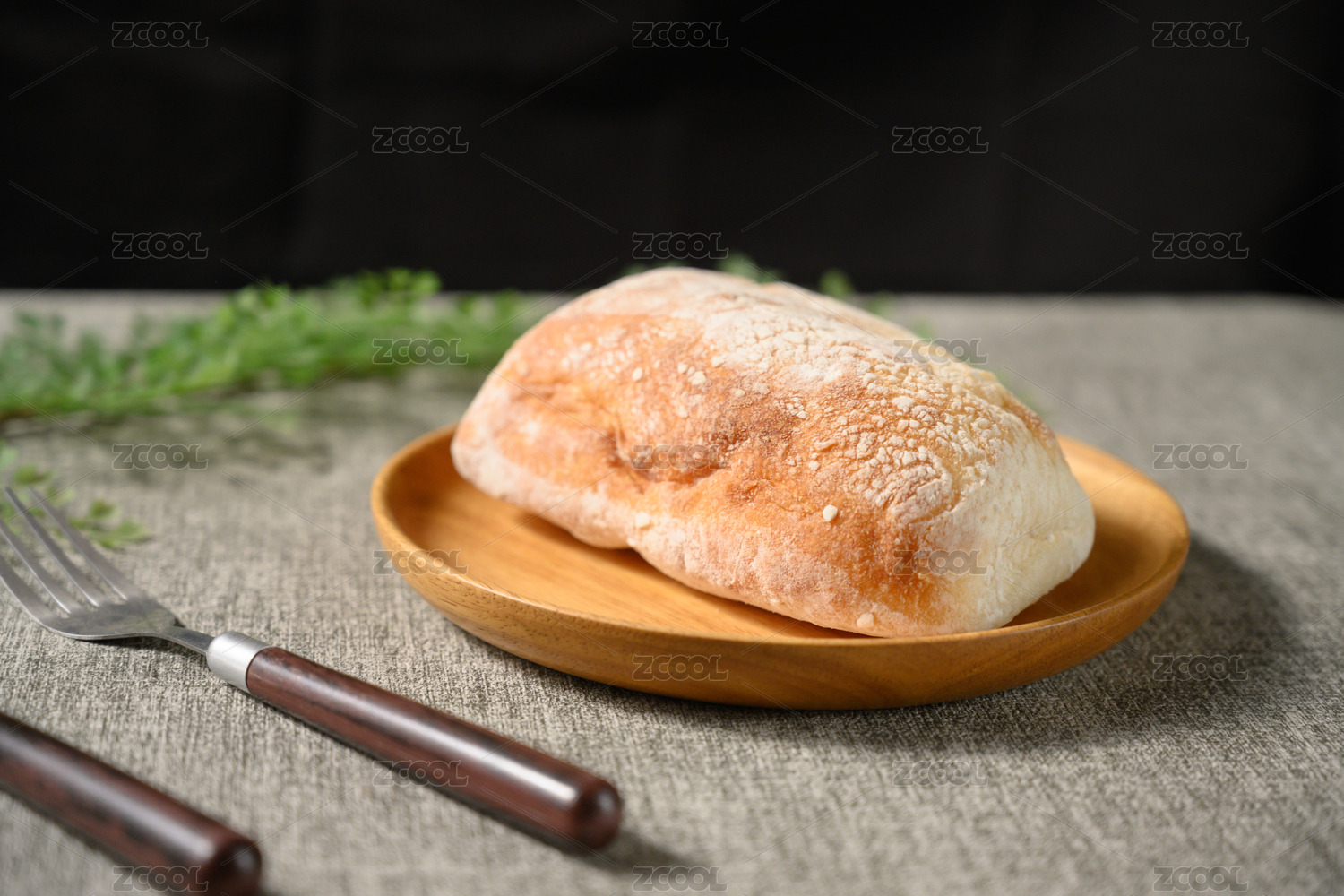 桌面上的盘子里的美味可口的恰巴塔面包