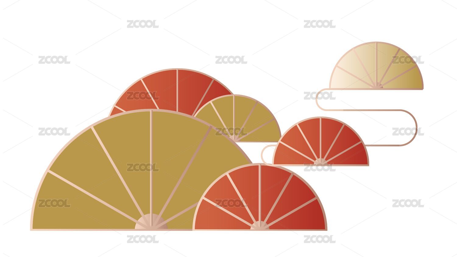 矢量传统扇形红金图案