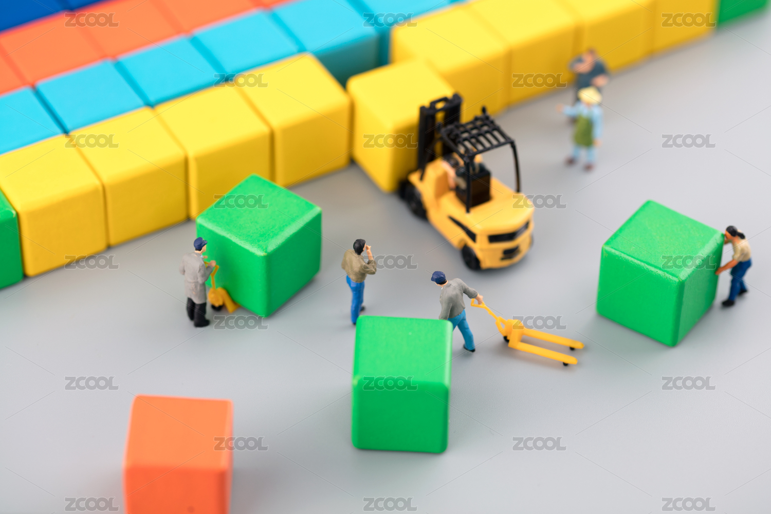 微缩场景工人挪开积木开辟道路