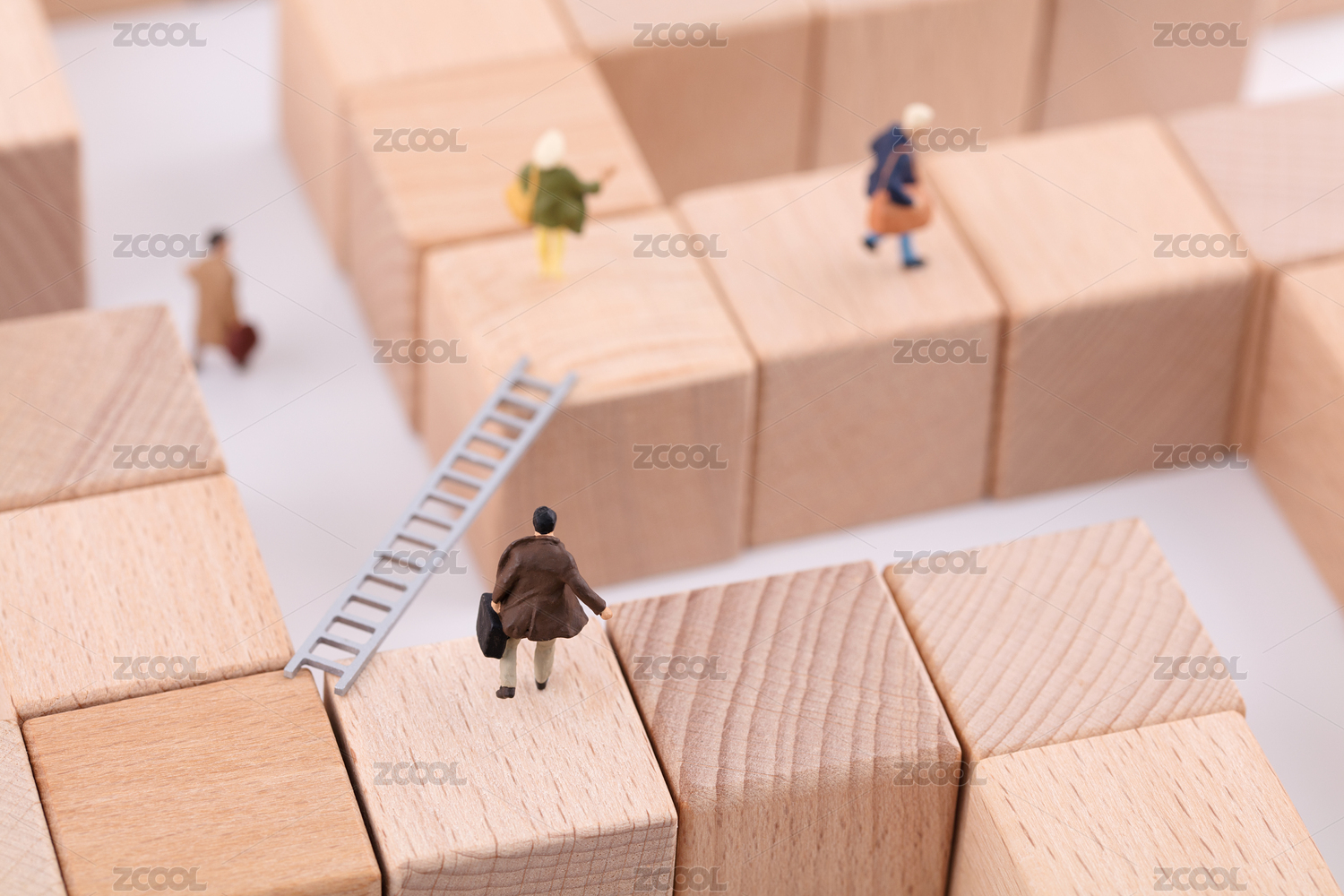 微缩创意行人迷失在积木迷宫里