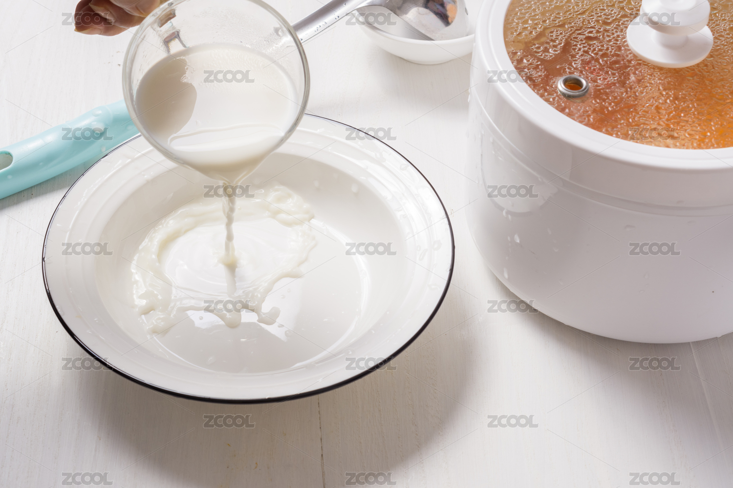 桌面上的碗里的美味可口的牛奶炖桃胶