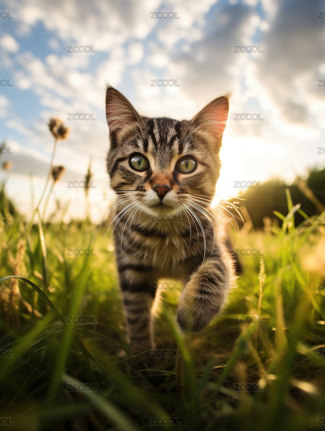 夕阳野外的小猫