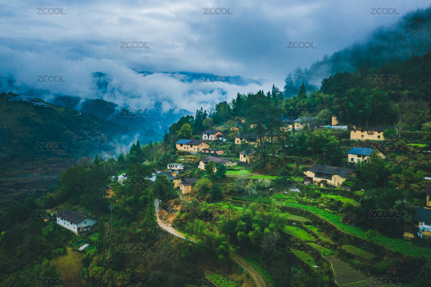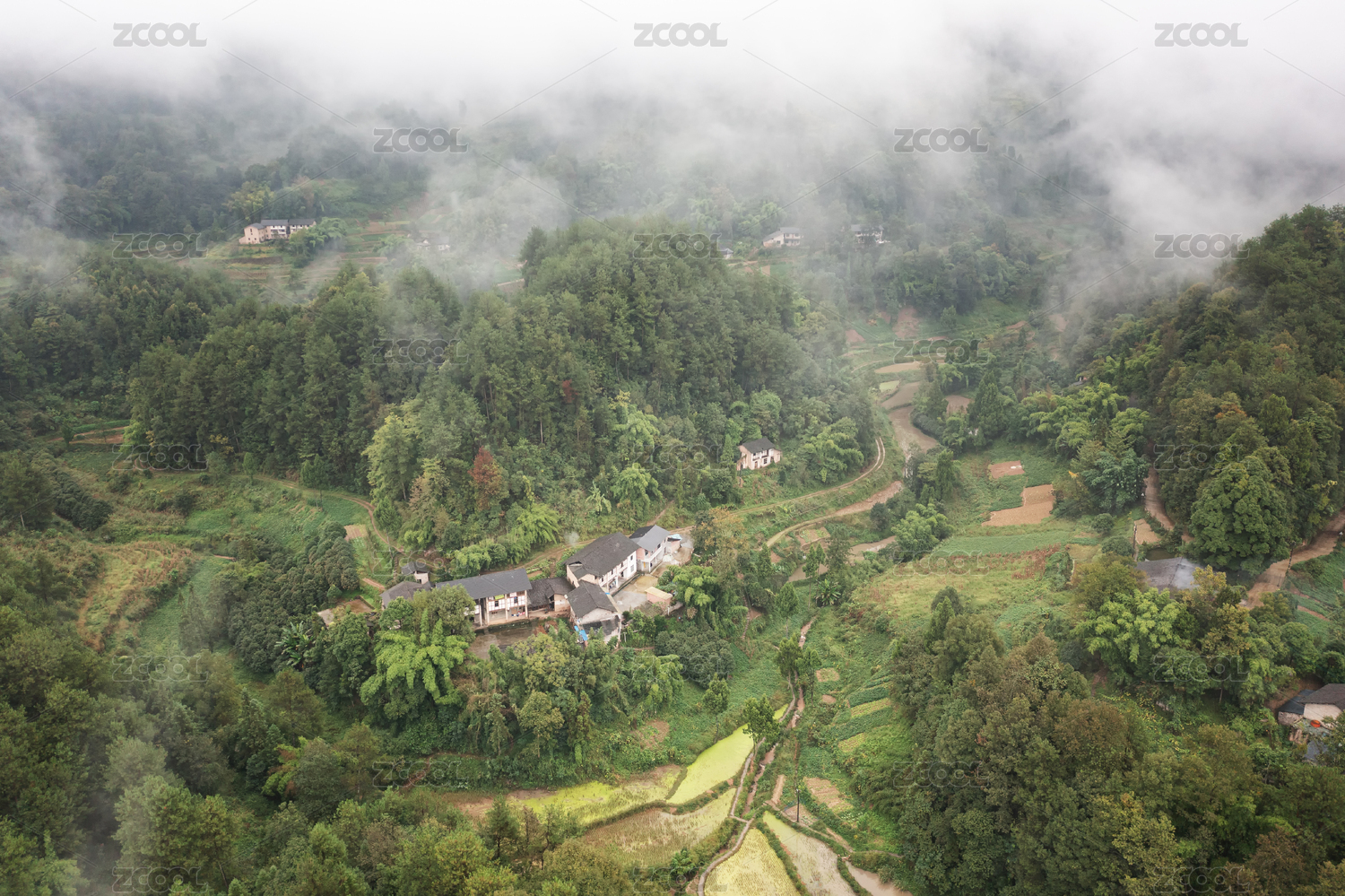 中国四川省达州市郊外山谷乡村民宅建筑