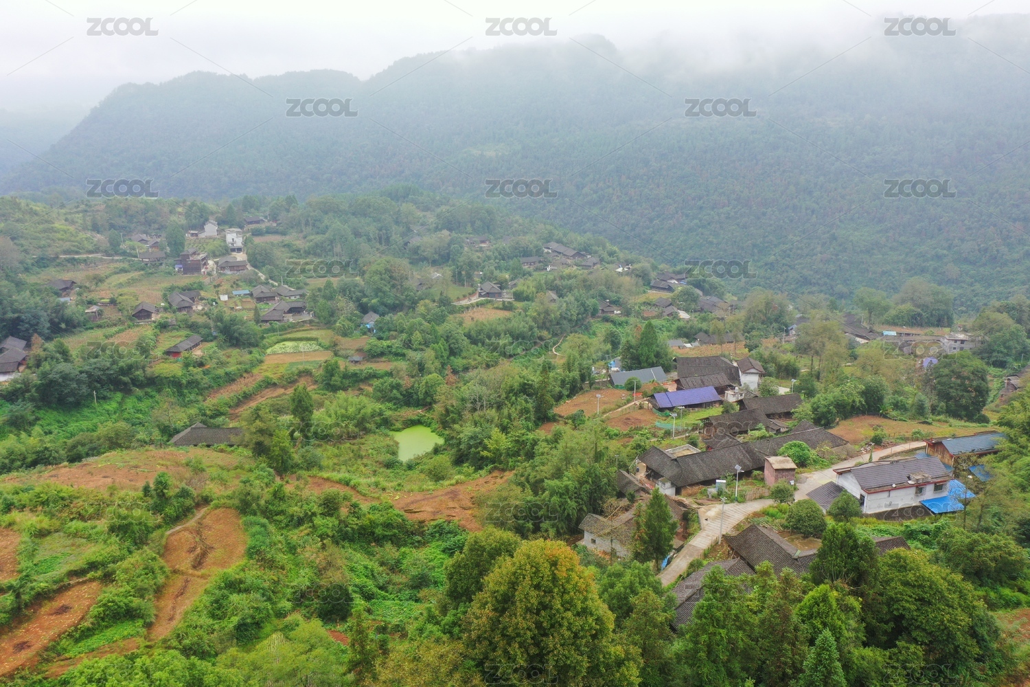 重庆山村云雾航拍自然风光