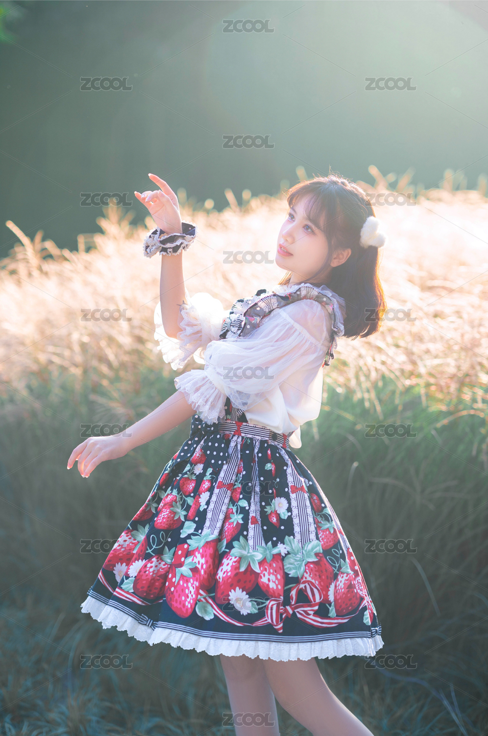 穿女仆围裙装的女孩在绿野仙踪中玩耍游玩