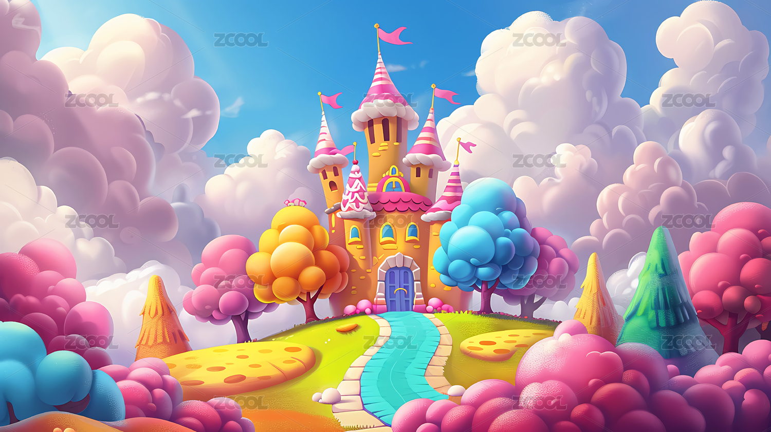 空中城堡空中花园天空之城岛屿蓝天白云奇幻