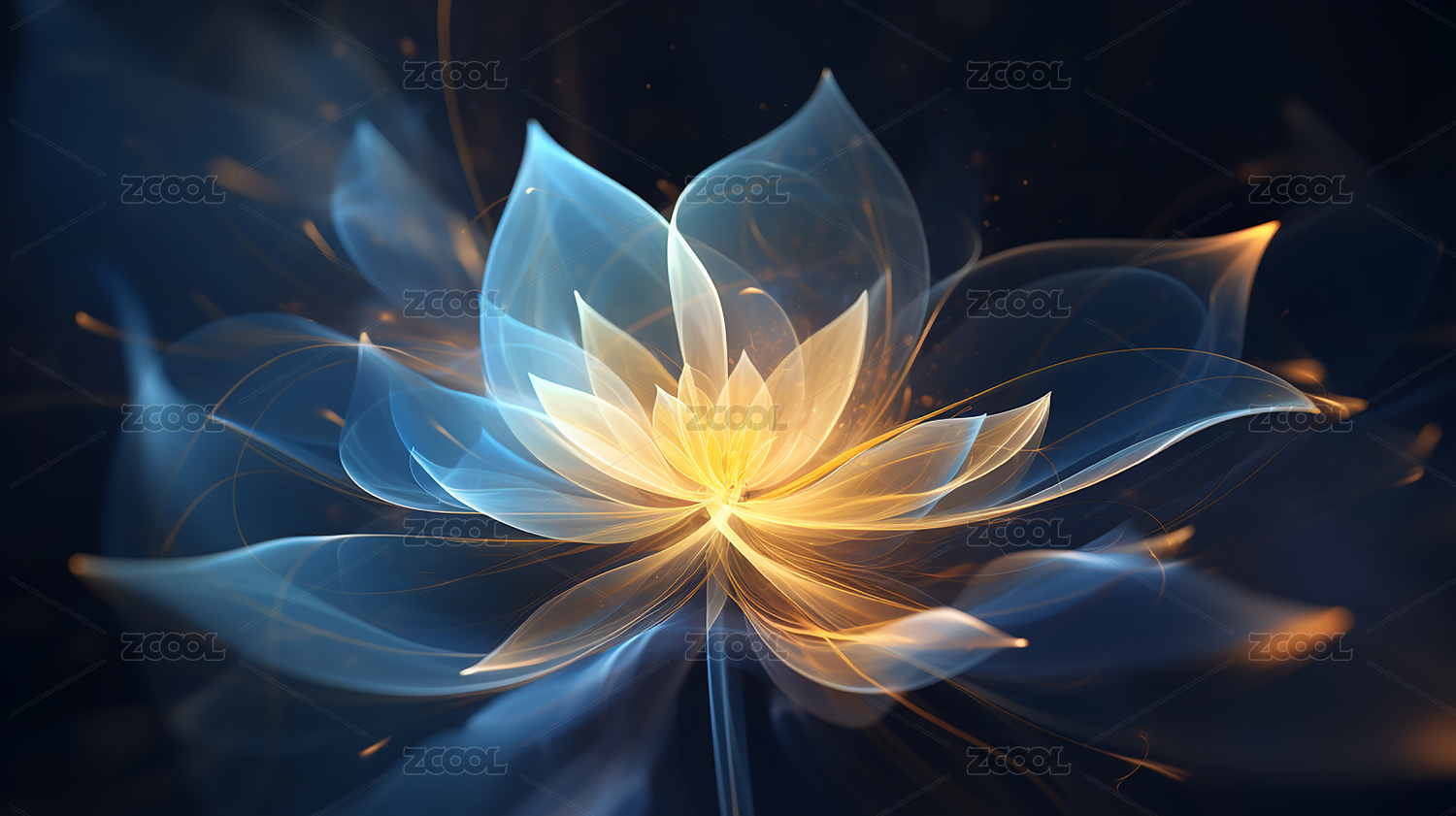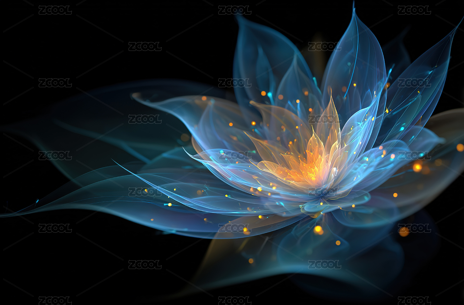 花朵花瓣绽放科技背景抽象数字艺术插画
