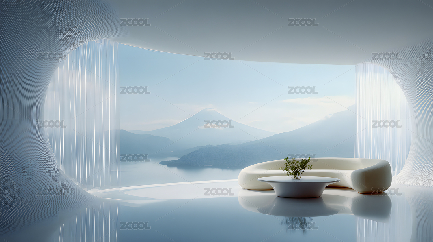 未来,窗户,椅子,山脉,树木,阳光,室内,设计,现代,科技