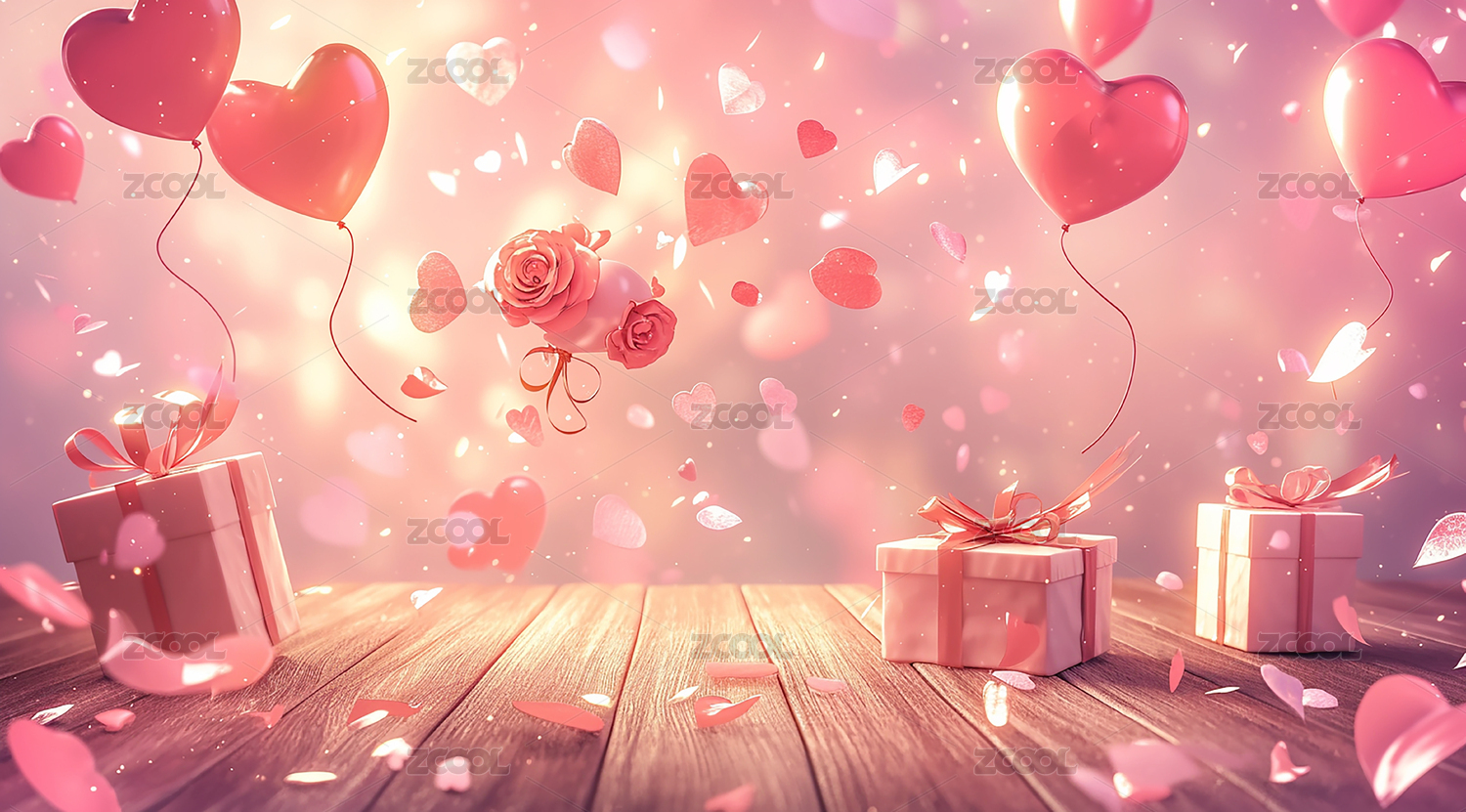 情人节七夕浪漫礼物礼品花瓣插画背景