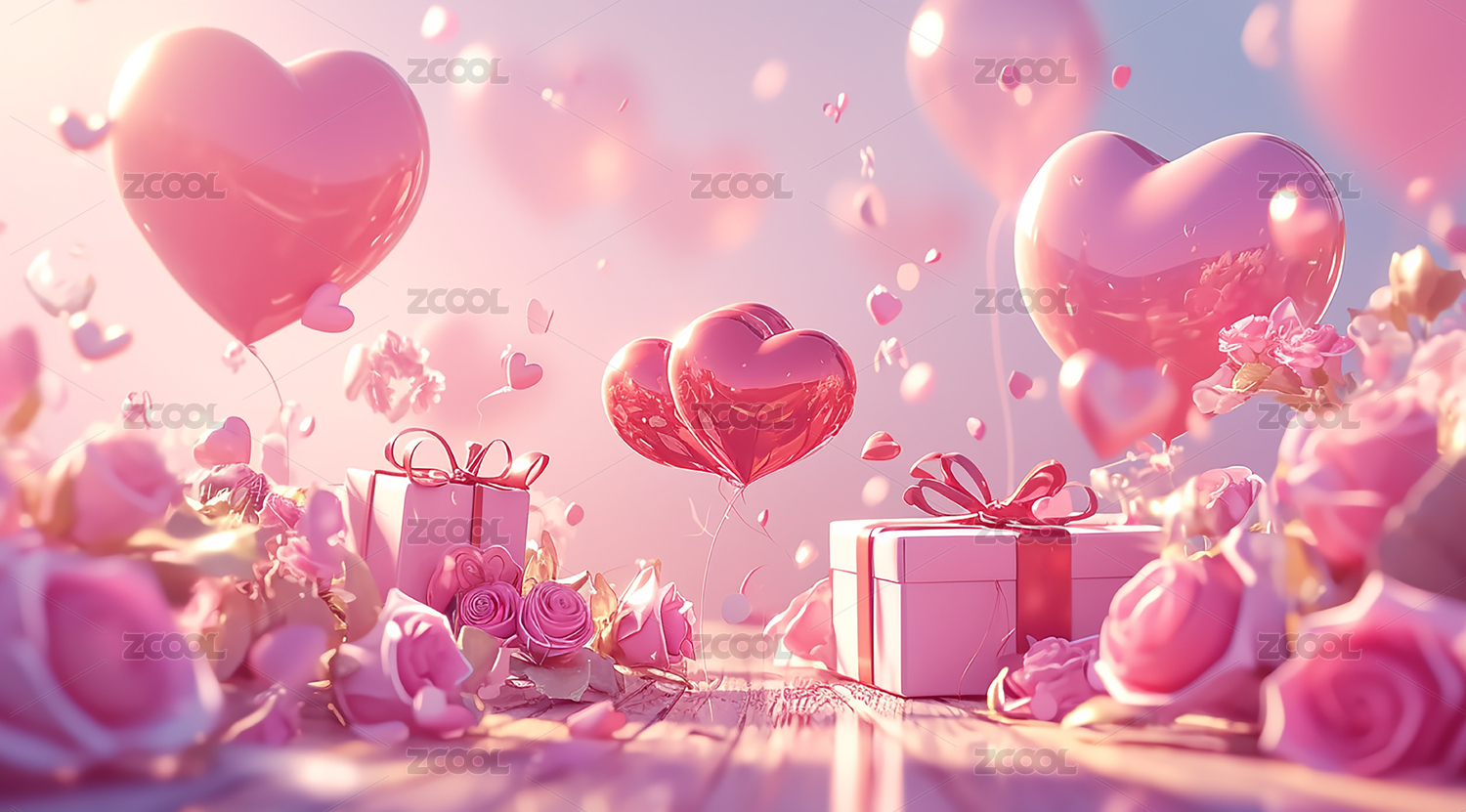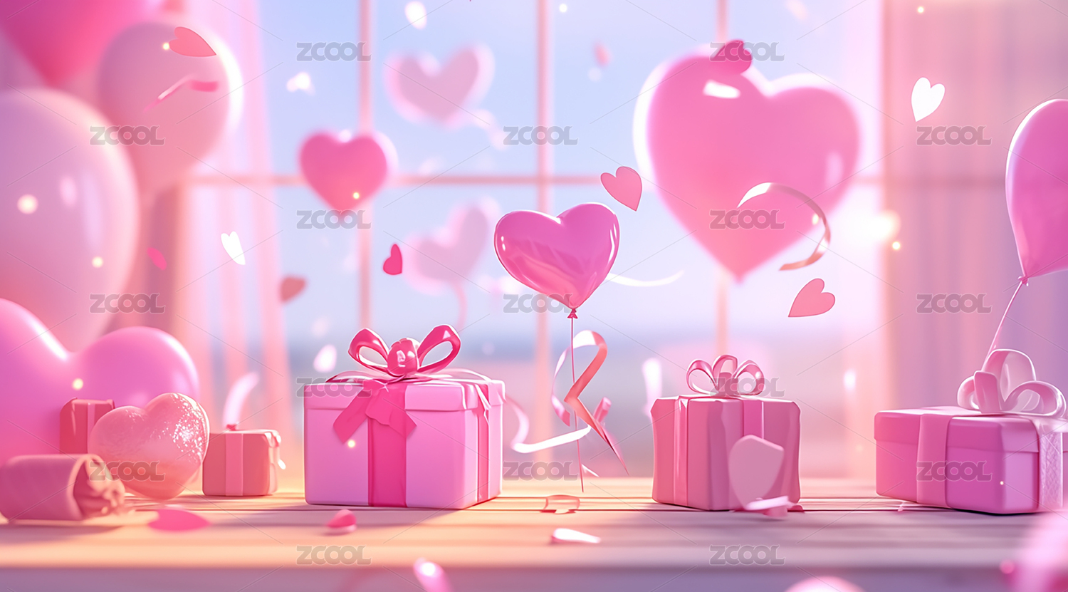 情人节,爱情,粉色,桃心,礼物盒,背景