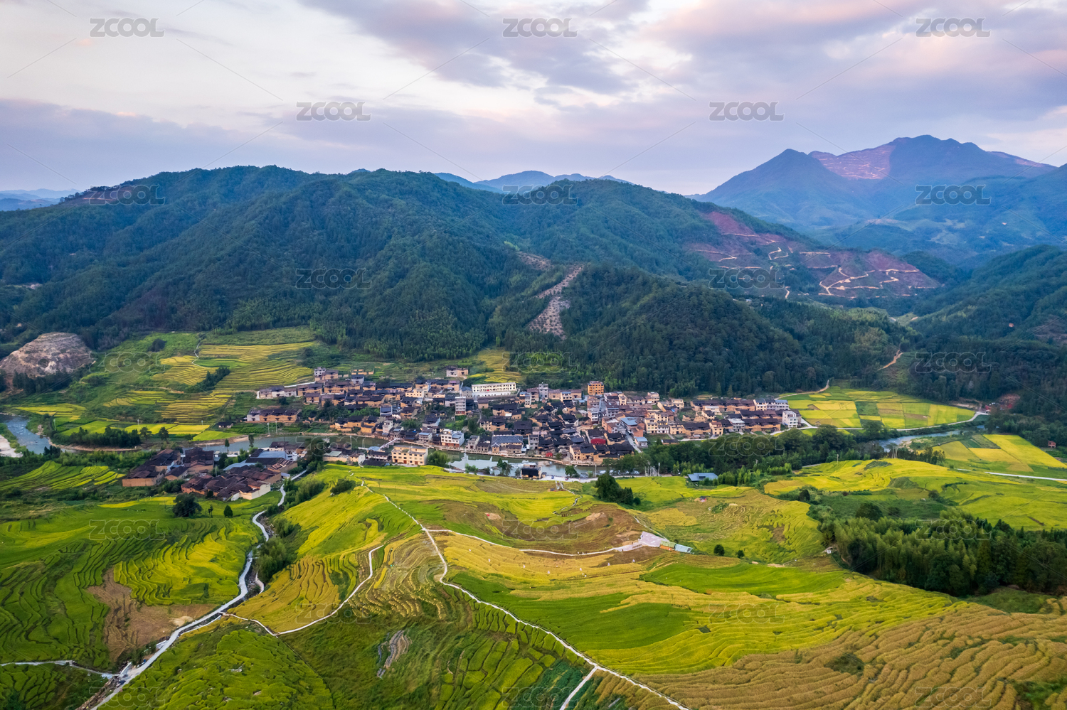 中国,福建,宁德,屏南,梯田,柏源村,天空,云朵,日落,晚霞