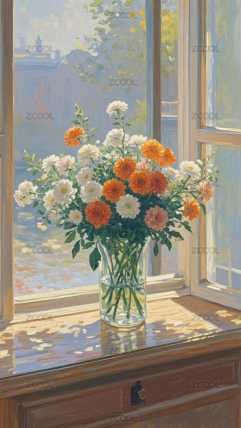 窗边盛开的鲜花