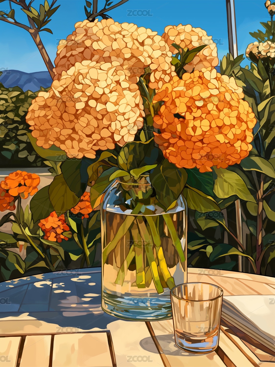桌上的绣球花