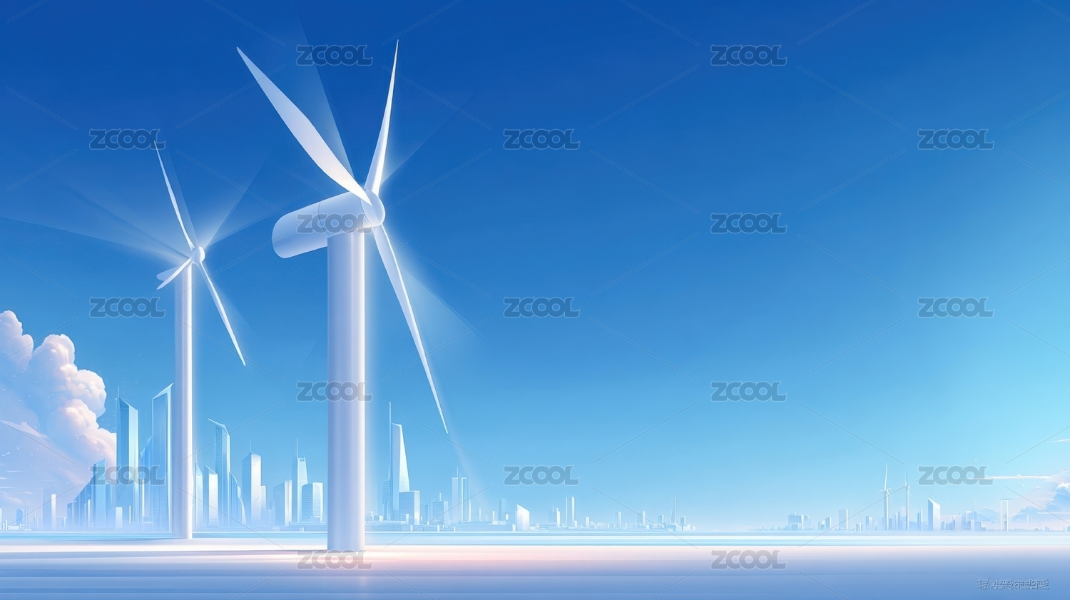 蓝天白云下的风力发电机
