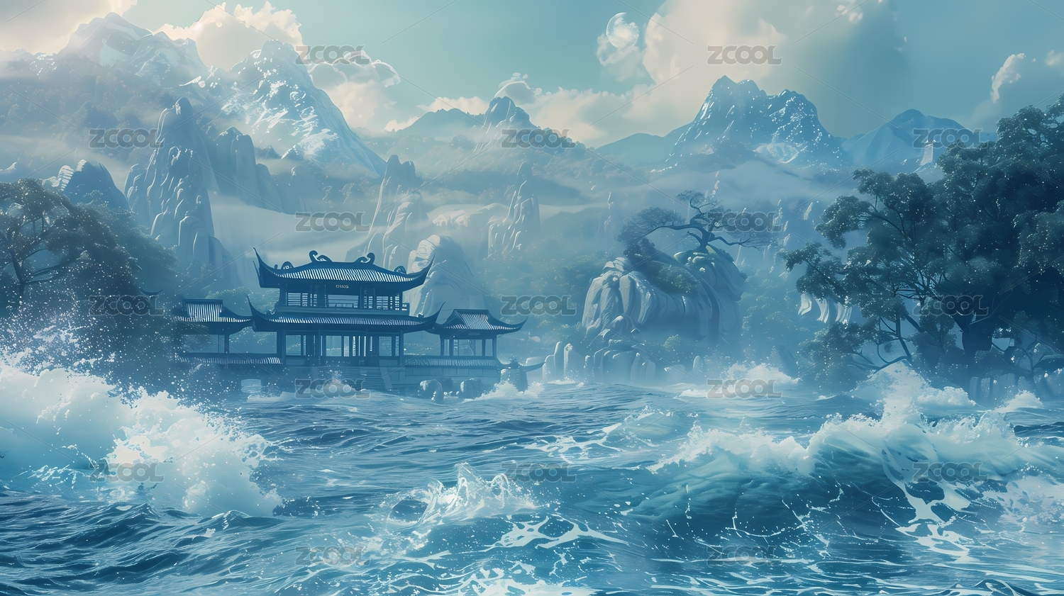 古风水域建筑插画