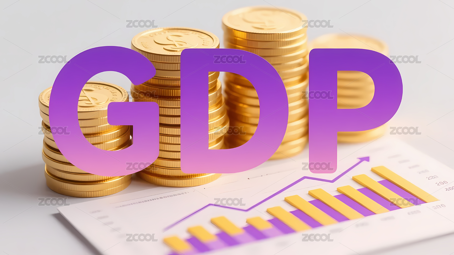 紫色GDP配金币与图表背景