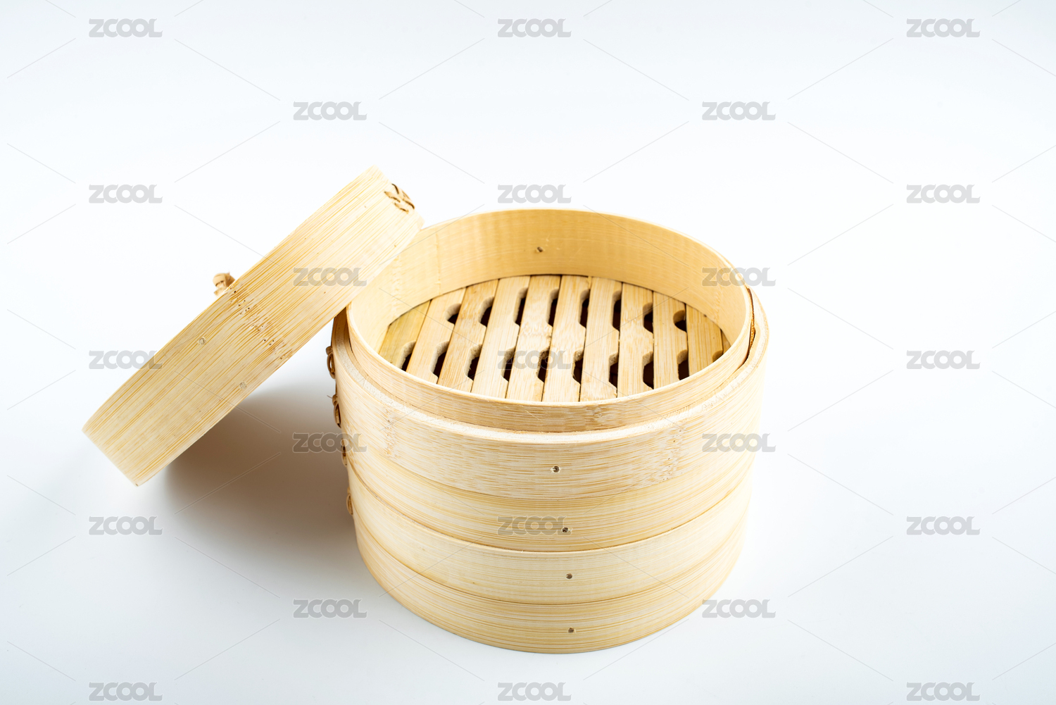 白色背景上去青皮楠竹蒸笼