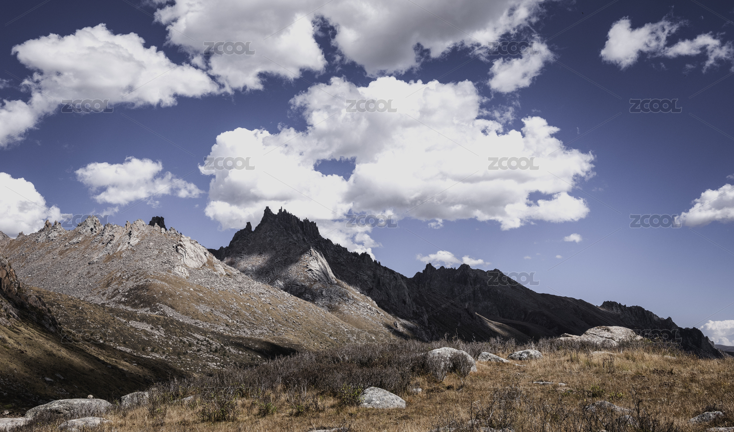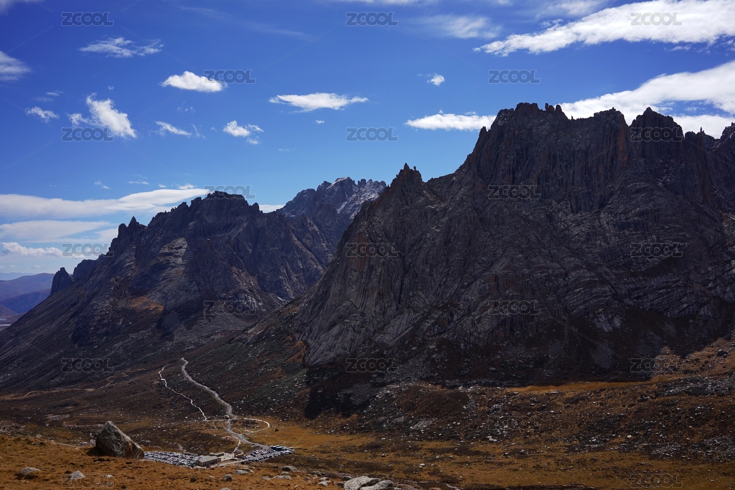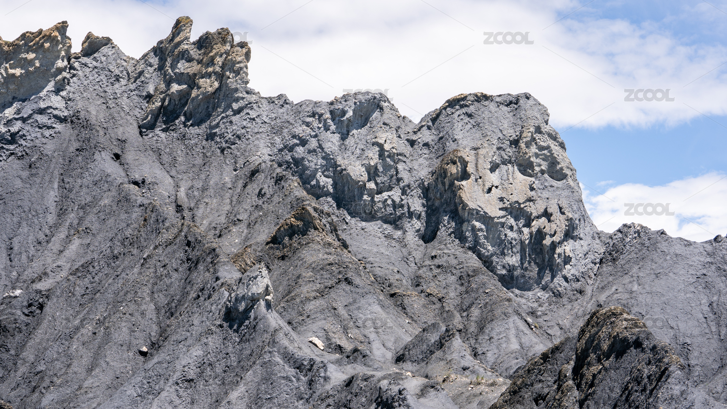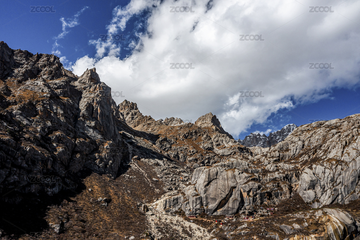 蓝天白云下的裸露山峰