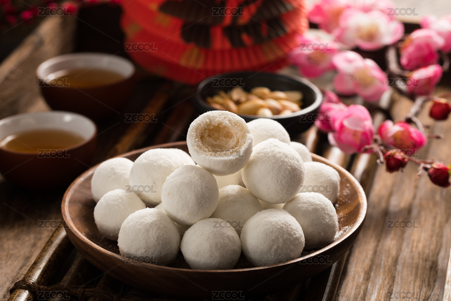 用木盘装着放在古书上传统点心老京果