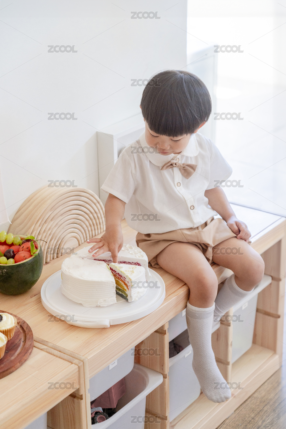 享受蟹腿粉丝煲草莓酸奶的小男孩