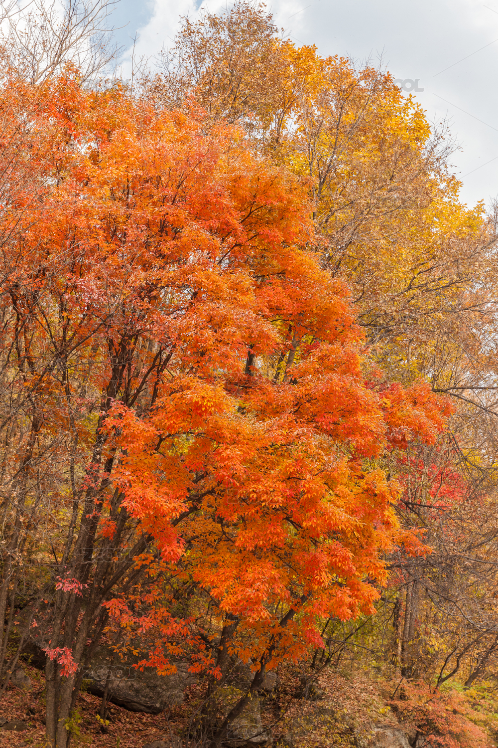 中国,五彩林,北方,吉林,大自然,室外,岩石,松花湖,枫叶,枫树