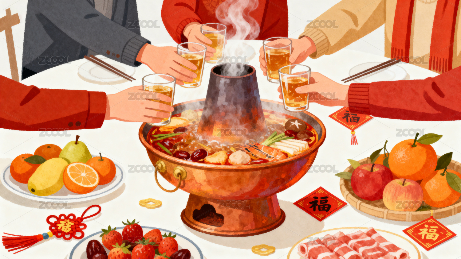 节日氛围的团员火锅