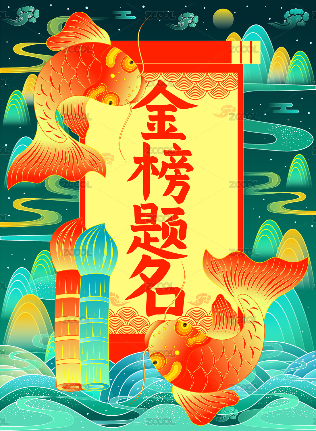 鸿运锦鲤祝高考学子金榜题名矢量插画