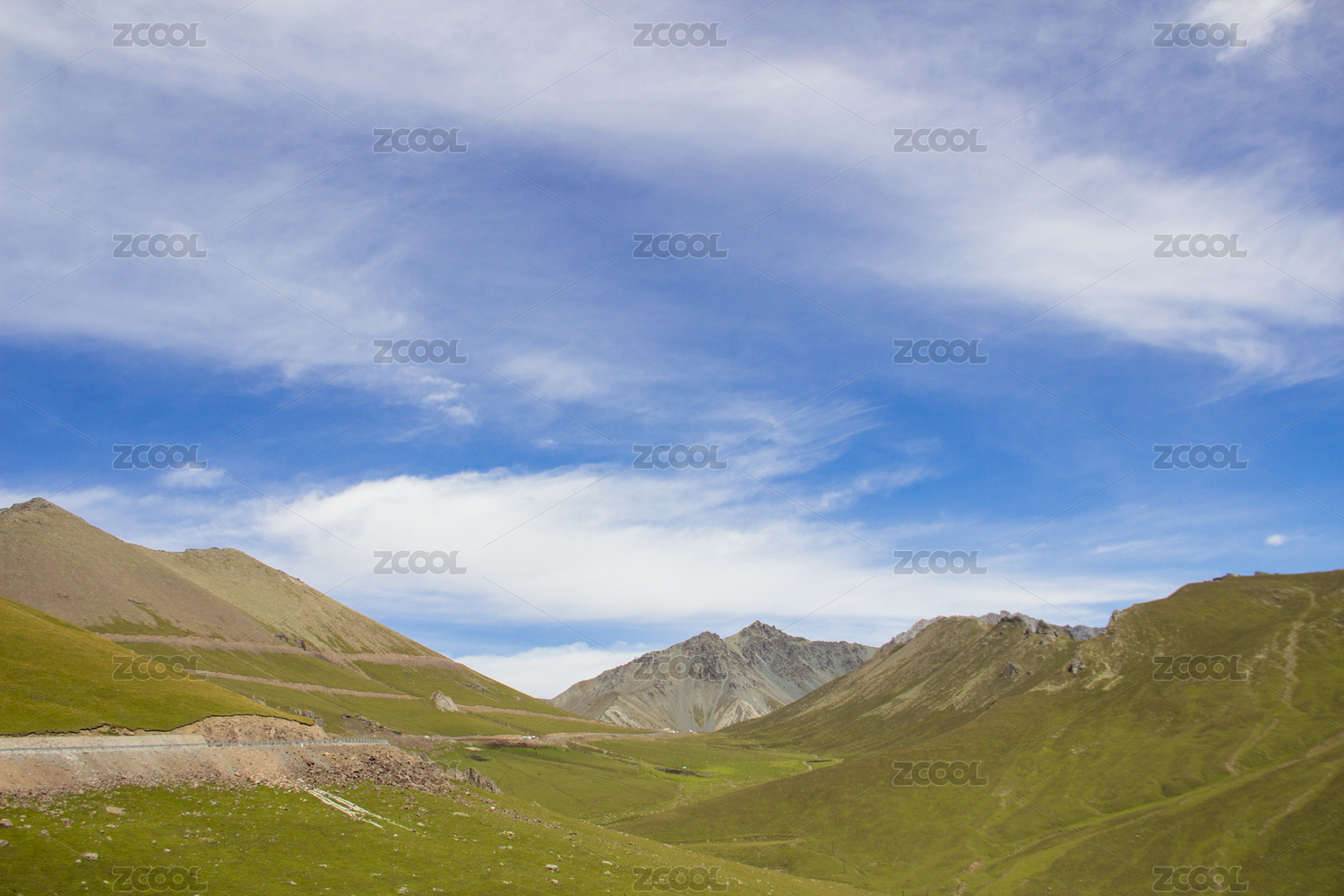 晴天气下中国新疆伊犁昭苏伊昭公路群山风景