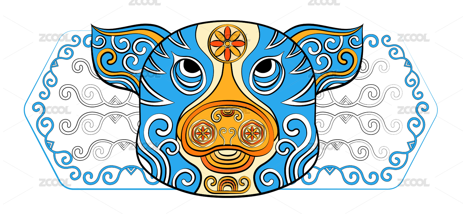 猪十二生肖潮流装饰纹样国潮卡通形象