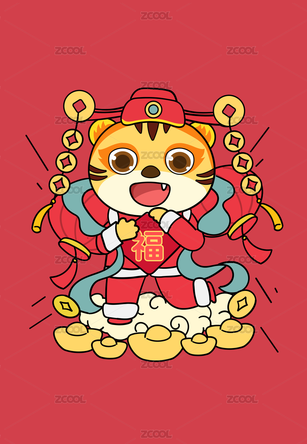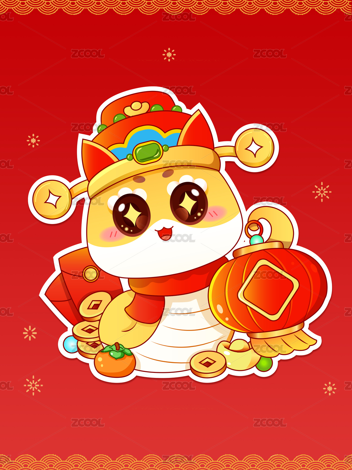 蛇年春节新年可爱卡通形象福禄元宝插画海报