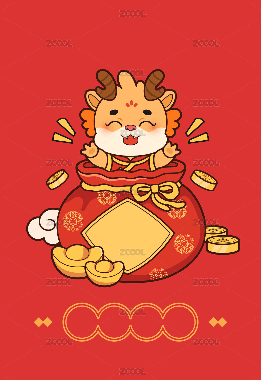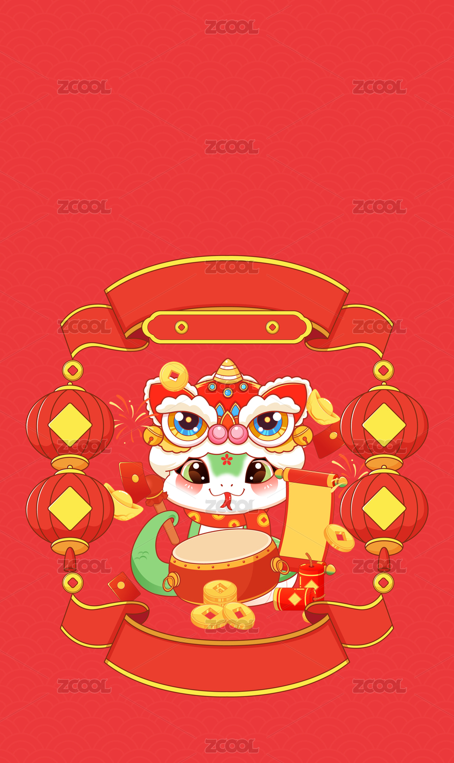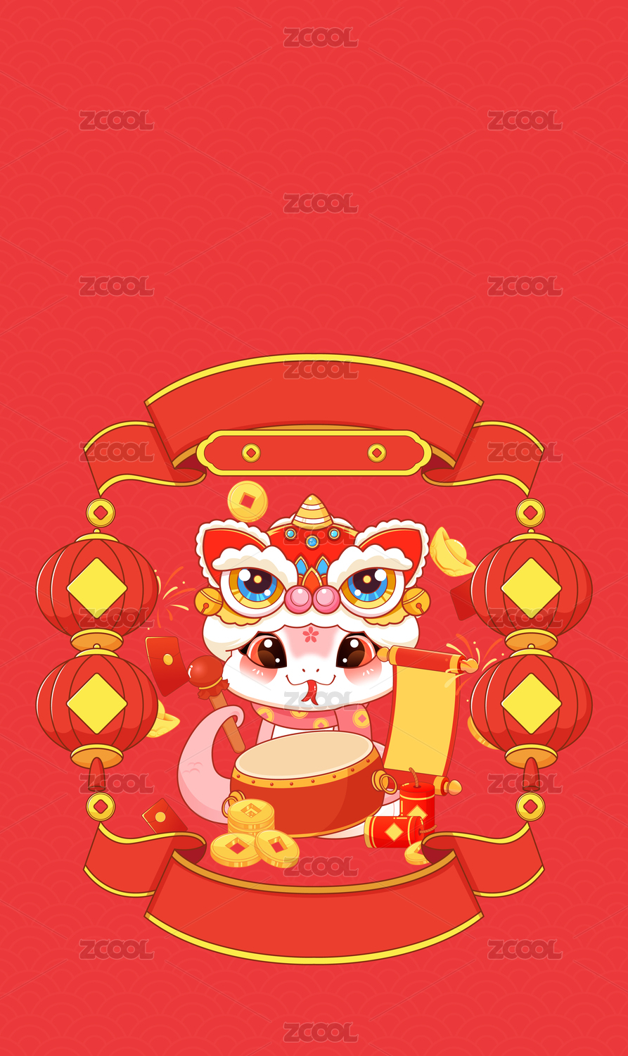蛇年春节新年可爱卡通形象灯笼红包插画海报