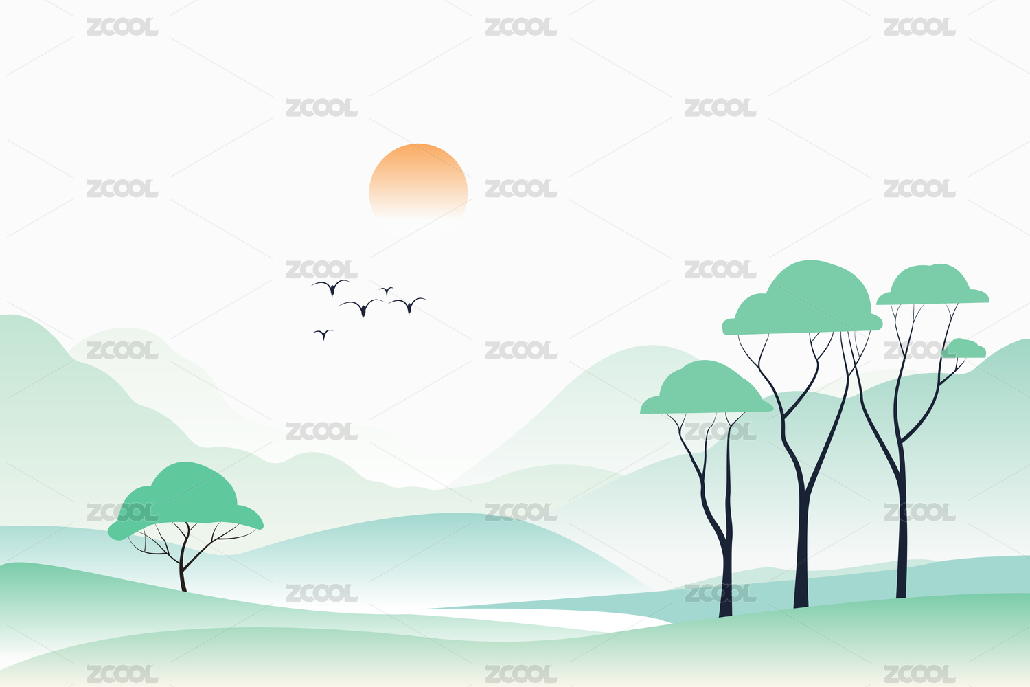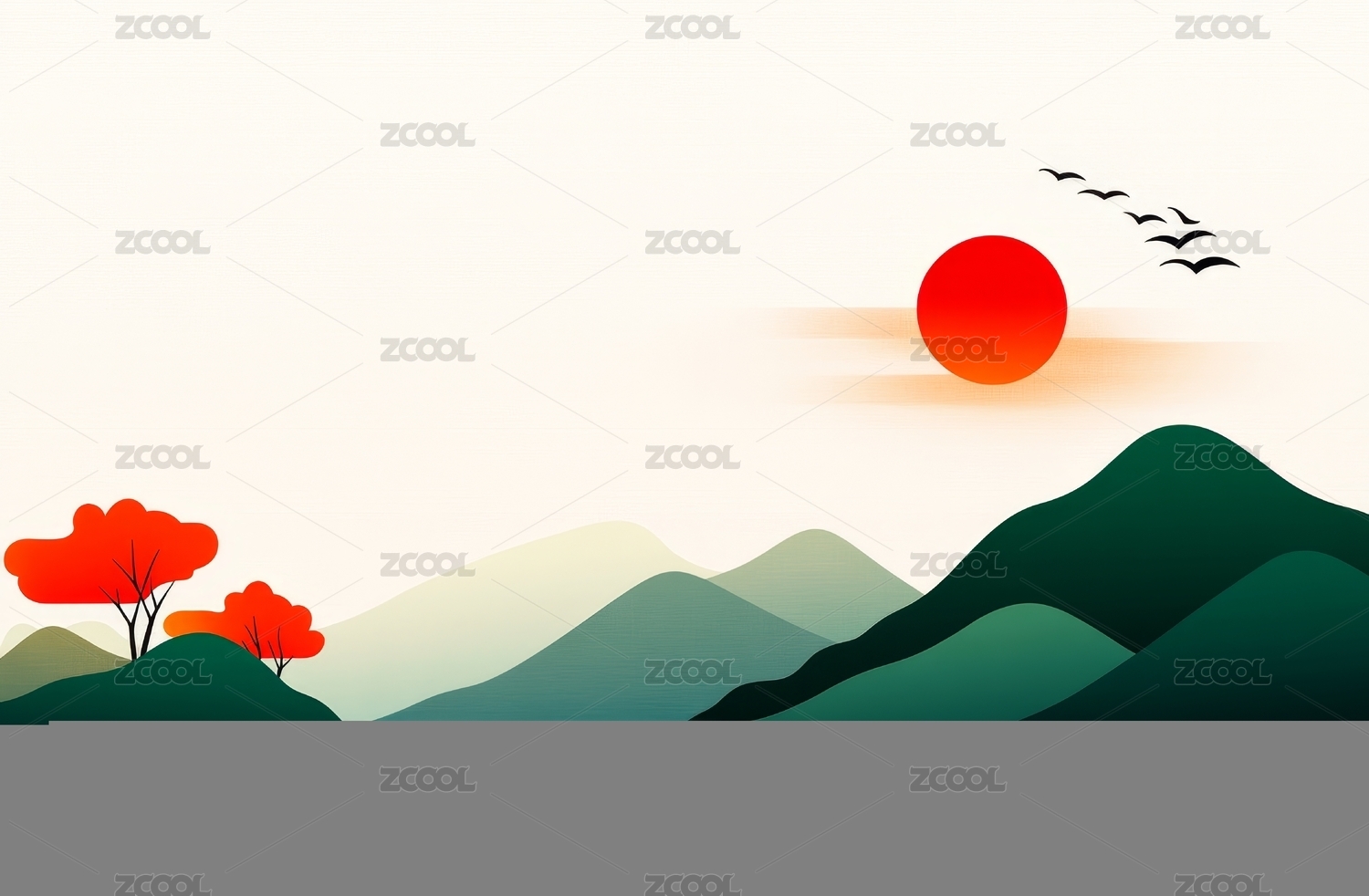 山水日出飞鸟