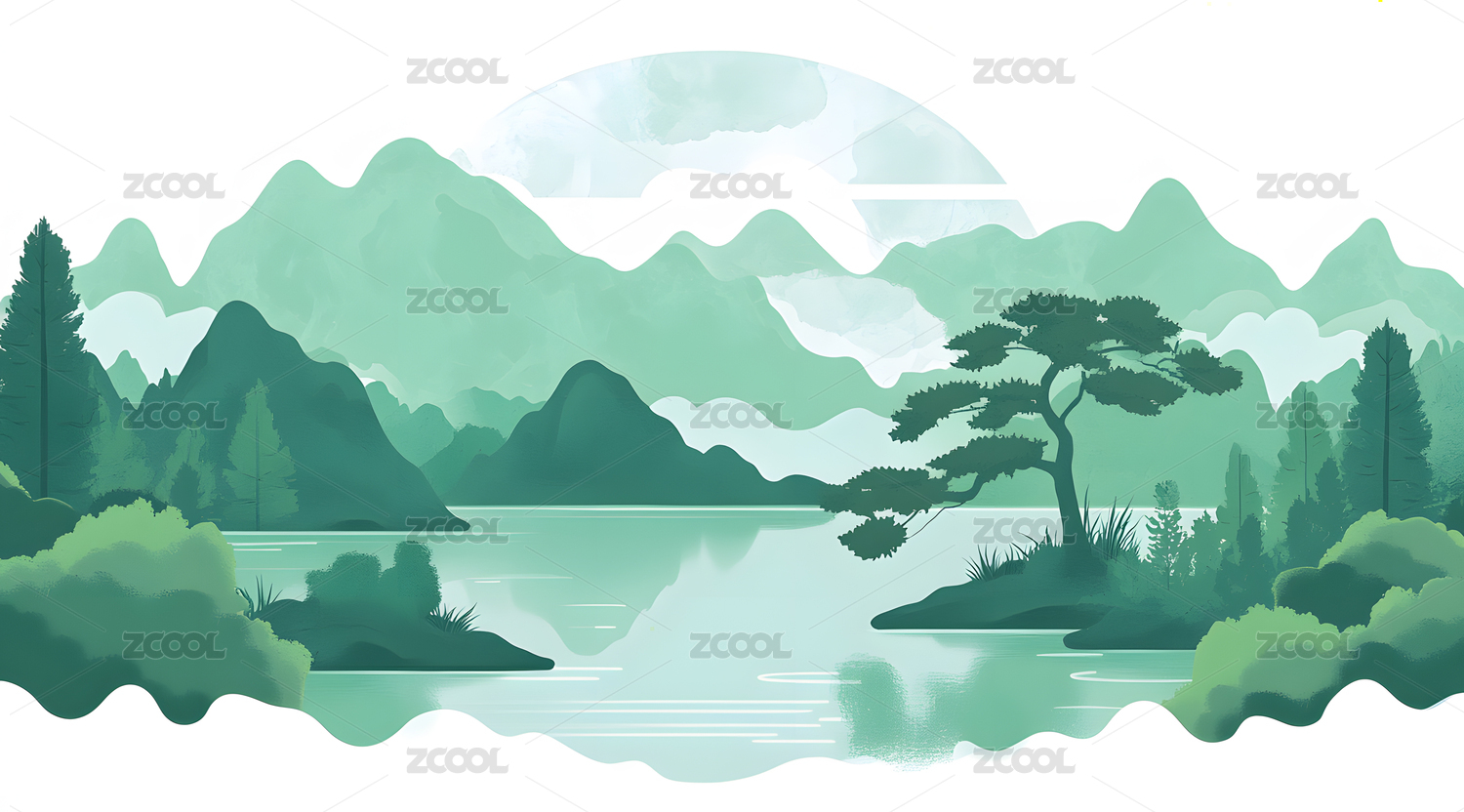 极简山水春意朦胧插画
