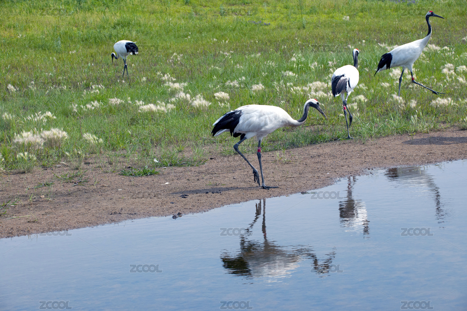 扎龙丹顶鹤自然保护区沼泽湿地里的丹顶鹤群
