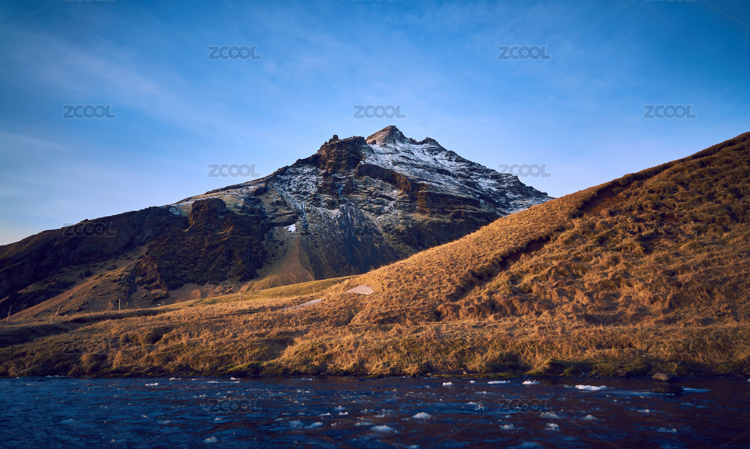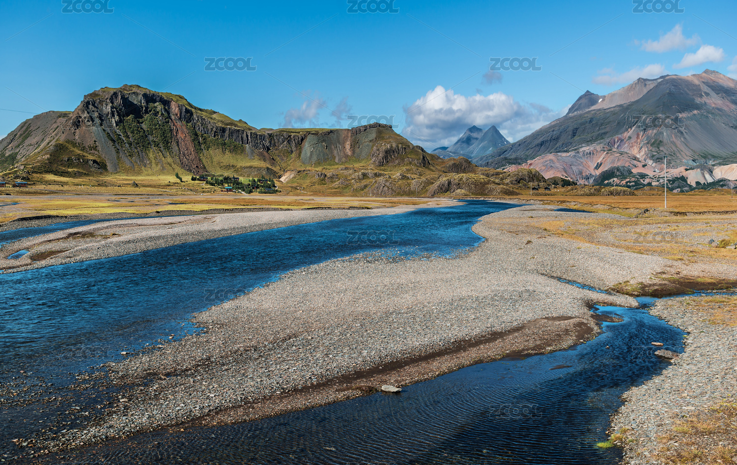 欧洲冰岛蓝色河流群山背景